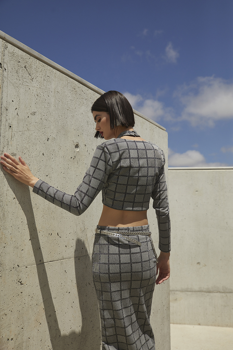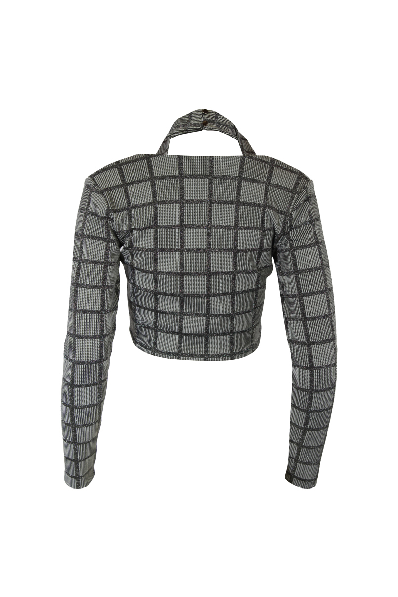 Top curto confeccionado em tecido de malha elástica. Manga comprida.