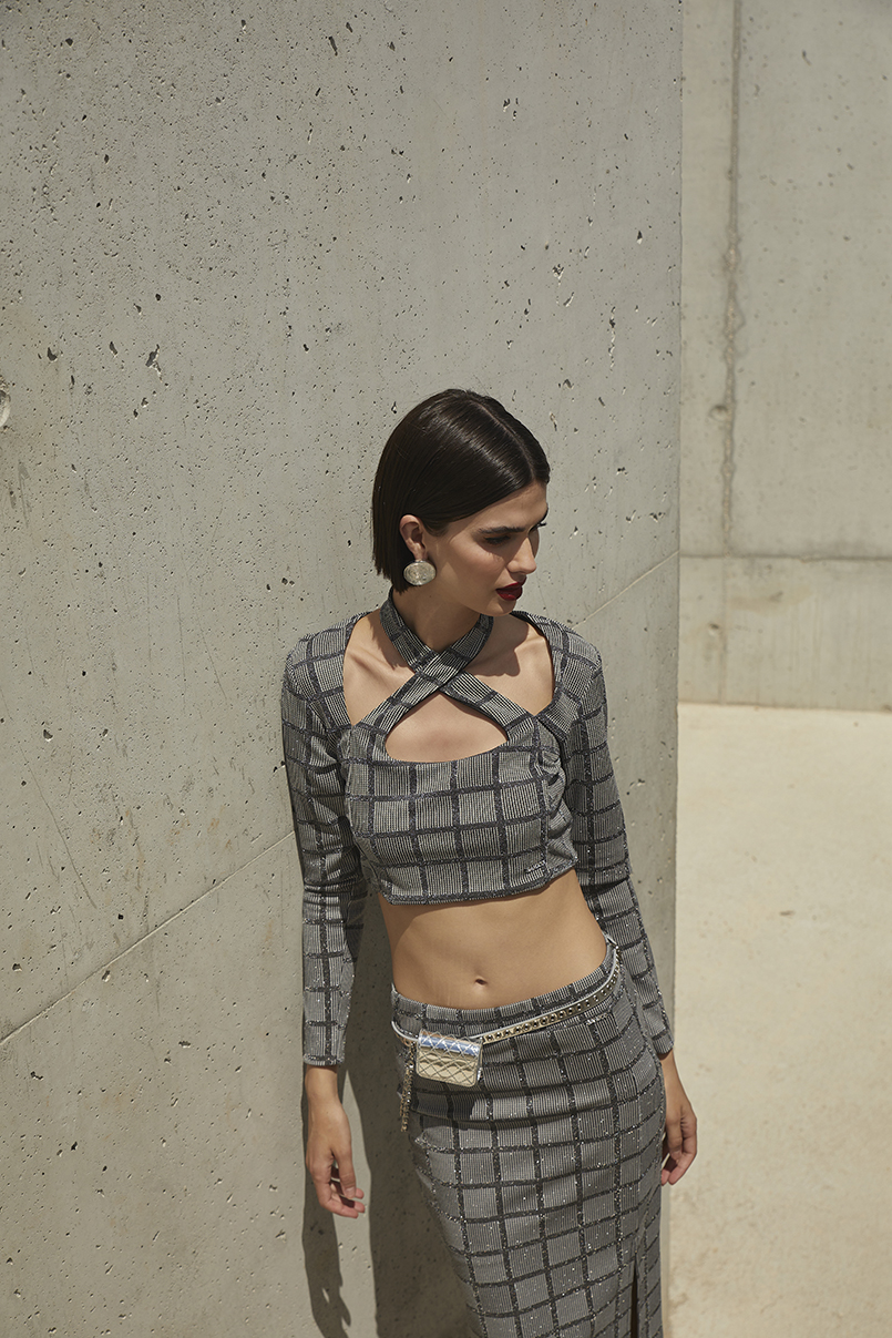 A modelo mede 1.79m e veste o tamanho S.
