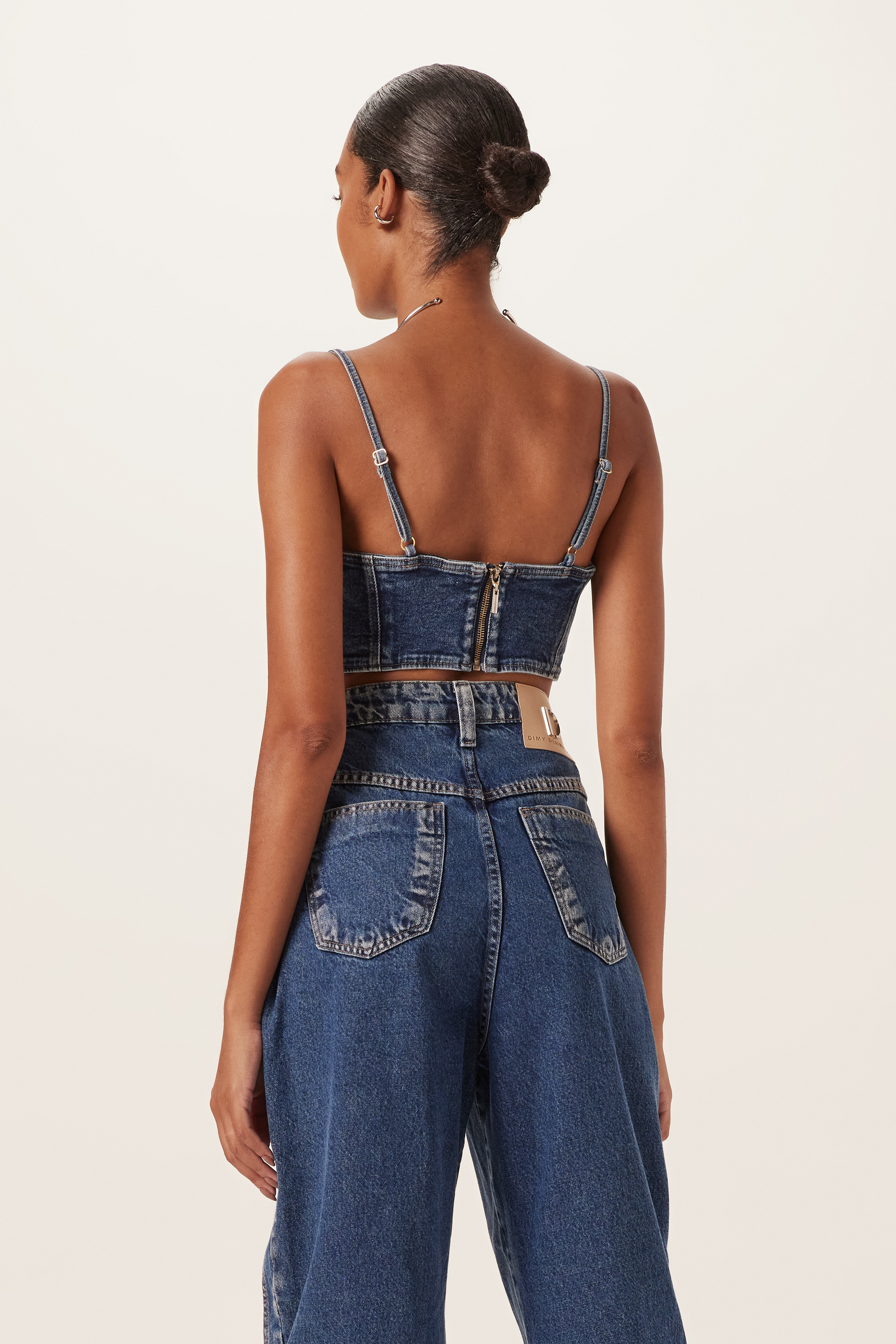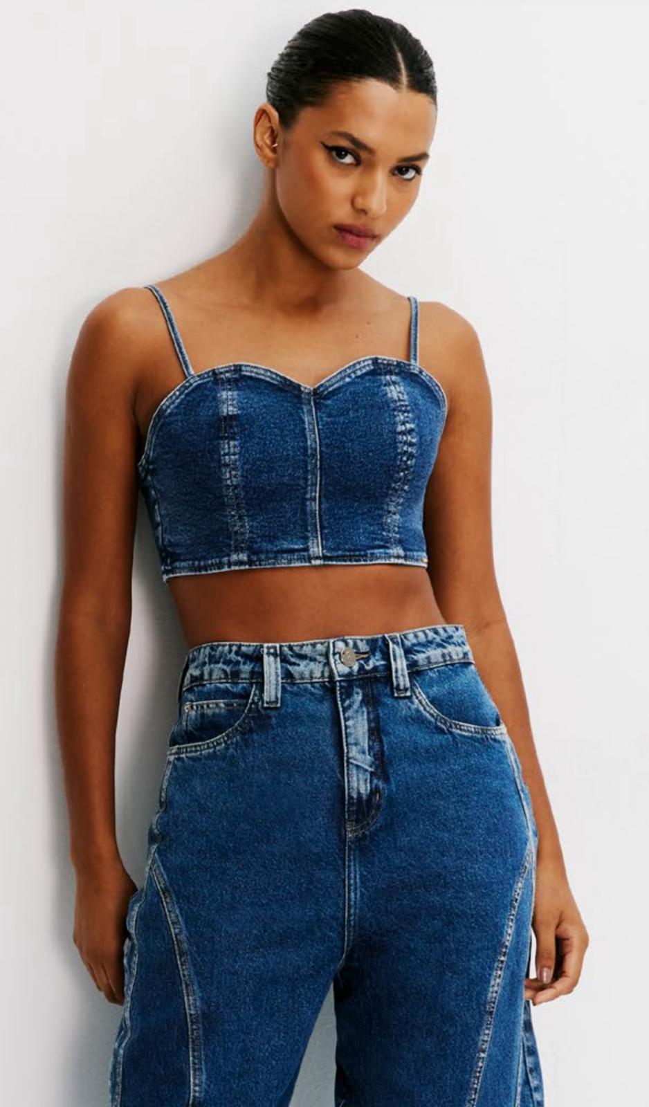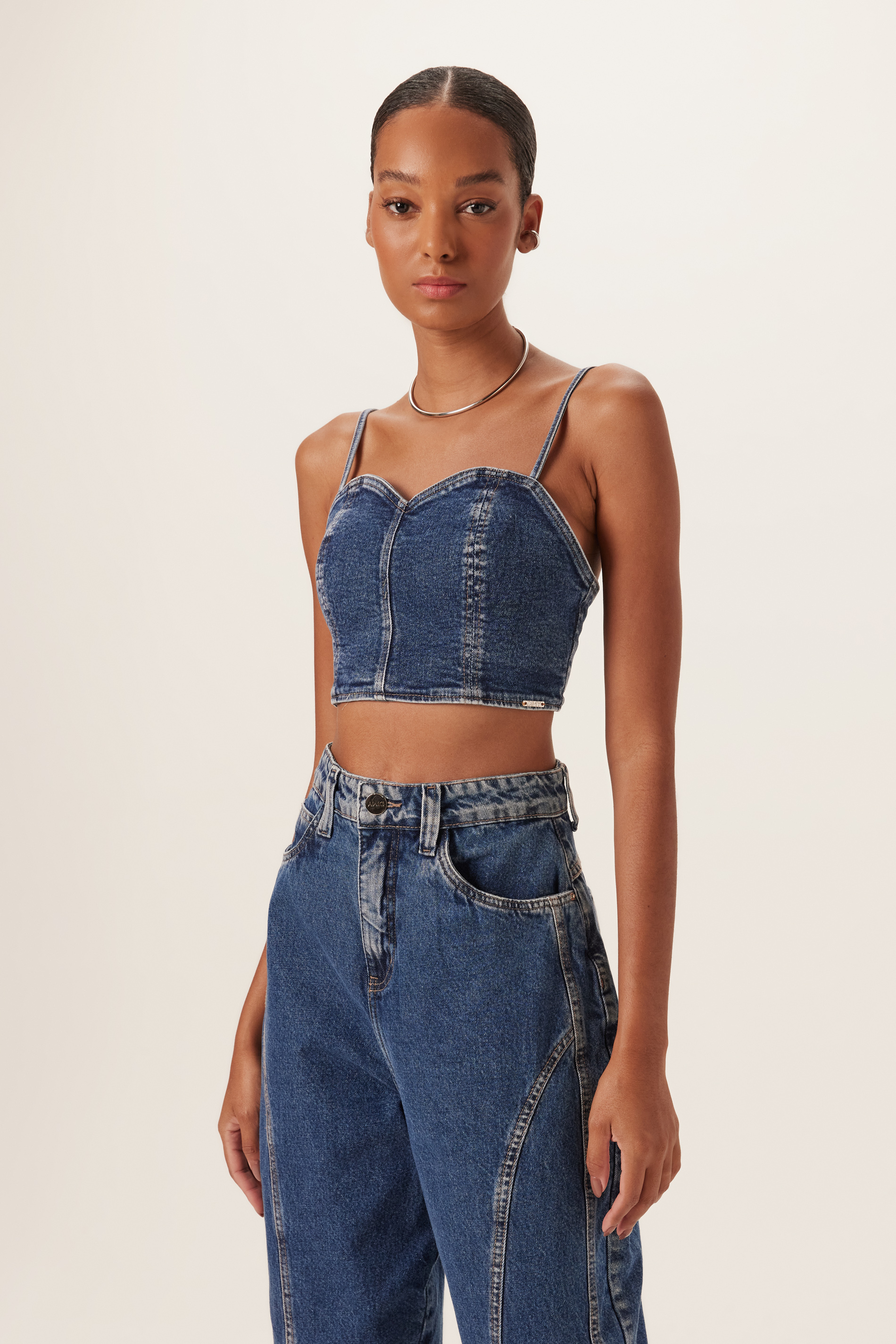 top corset coração jeans feminino dimy. com tecnologia avançada, esse top é feito de 98% algodão e 02% elastano, garantindo conforto e flexibilidade. seu design inovador em formato de coração traz um toque de feminilidade ao look. aproveite a qualidade e versatilidade desse item para arrasar nas produções. compre agora na dimy!