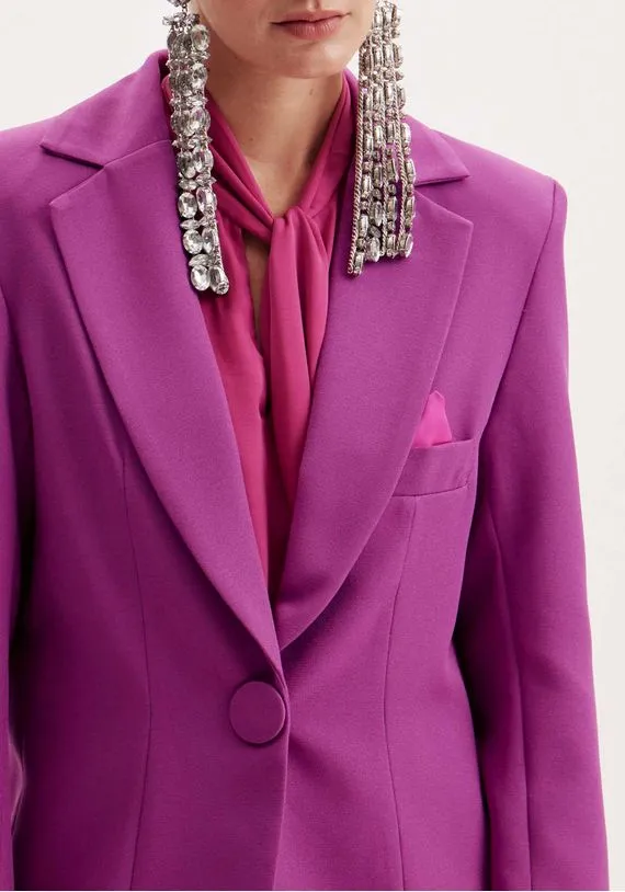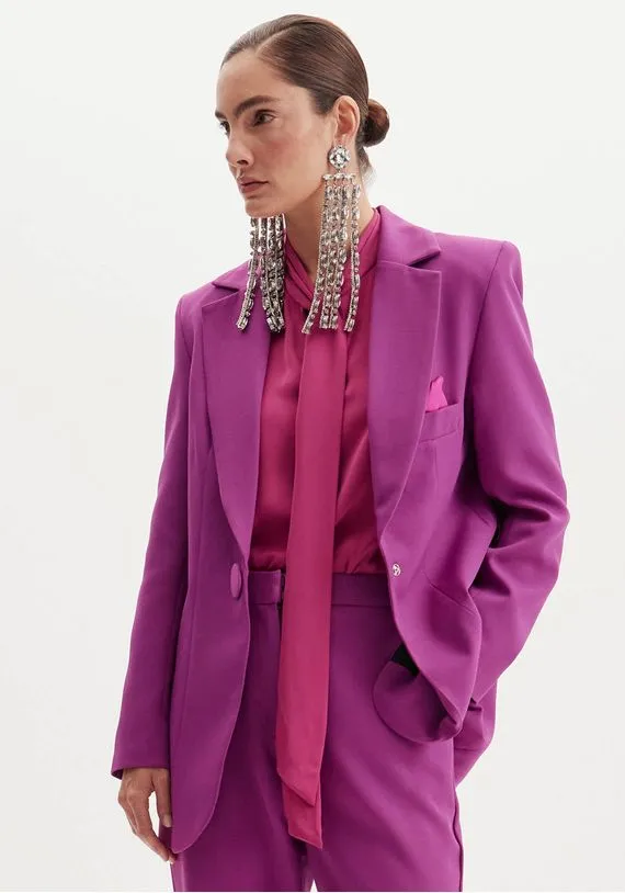 blazer em alfaiataria possui decote v profundo, que destaca o look. O maxi botão oferece um toque sofisticado a peça. Possui modelagem alongada e shape estruturado. Aposte no look monocromático e vista- se com o poder da mulher lança perfume!