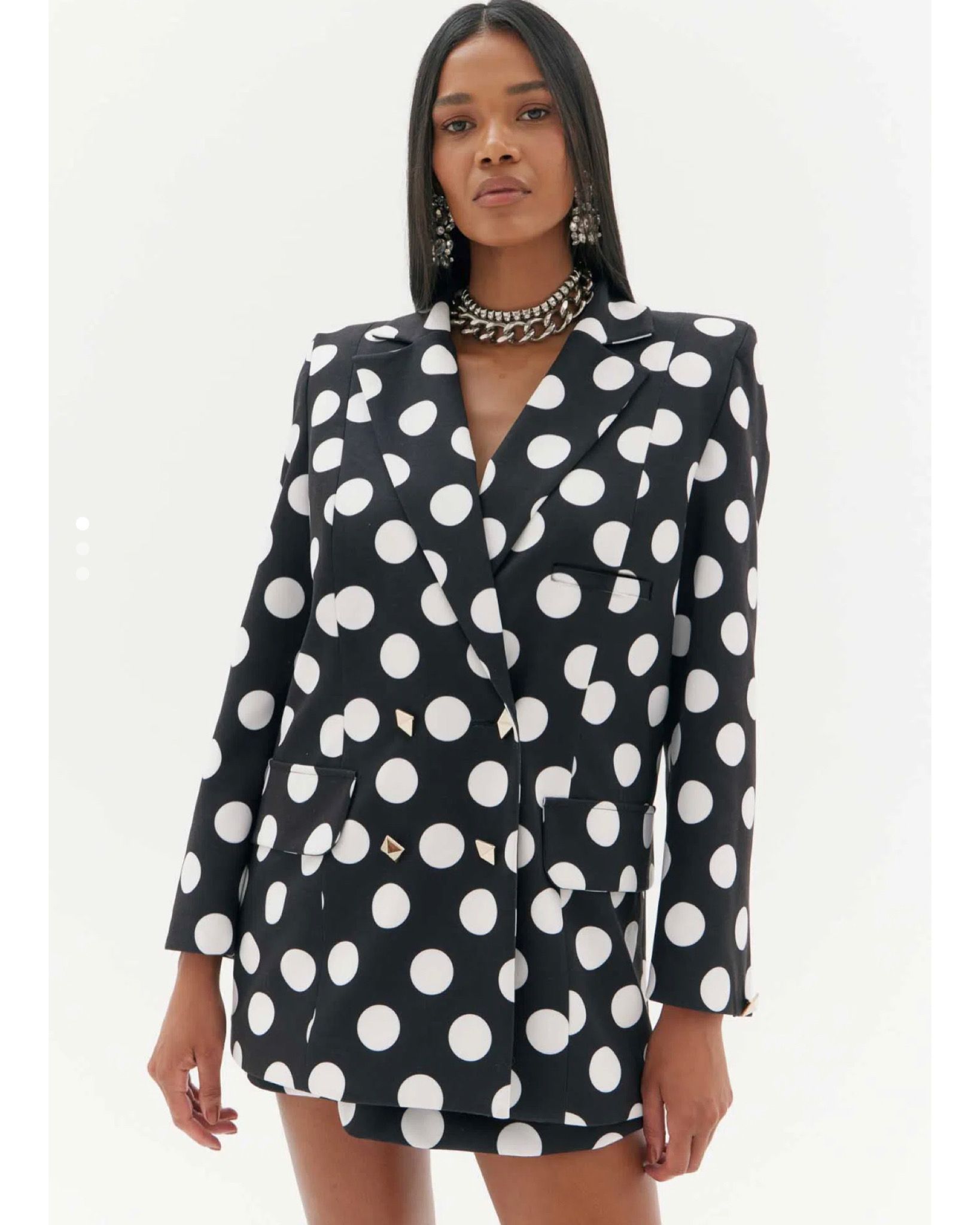 A era dos blazers estampados chegou para deixar os looks cheios de personalidade. Em construção sofisticada, a peça conta com recortes, mangas longas, bolsos, ombreiras, gola camisa e fechamento por botões. Aposte!
