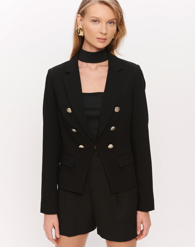 Blazer feminino Dimy em tecido plano, composto por 80% poliéster, 18% viscose e 2% de elastano. Possui detalhe em botões e não possui fechamento. Ideal para compor looks sofisticados e versáteis. Shop Now!