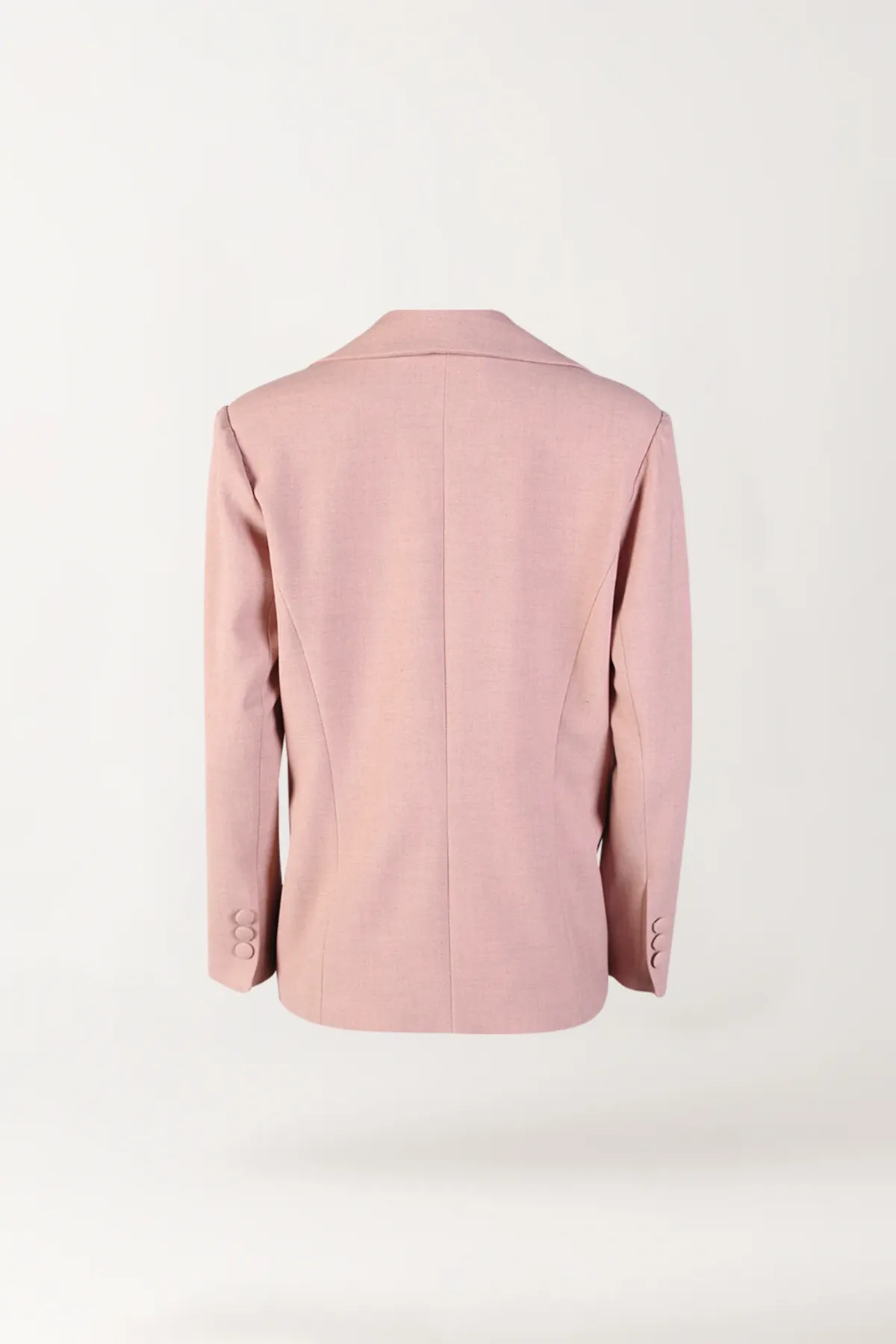 Blazer em tecido de alfaiataria leve, corte reto e lapela de ponta. Fecha com um botão forrado e tem bolsos com pala. O emblema, monograma SH, bordado à frente adiciona uma nota gráfica discreta. Um corte limpo, pensado para uso diário ou coordenado de conjunto.