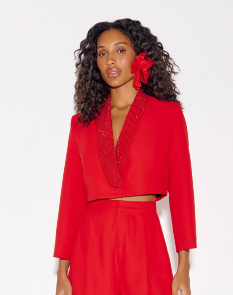 BLAZER VERMELHO BRILHO LANÇA PERFUME