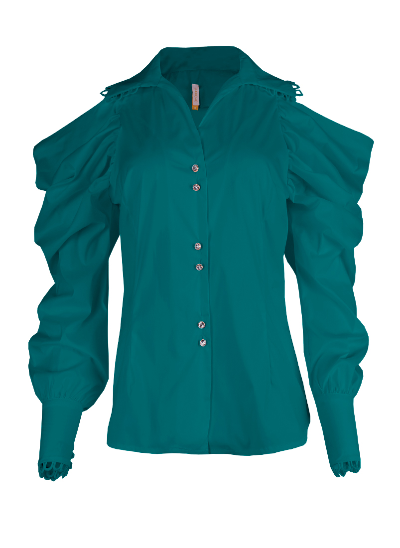 BLUSA OMBROS DESCOBERTOS COM MANGA ABALONADA