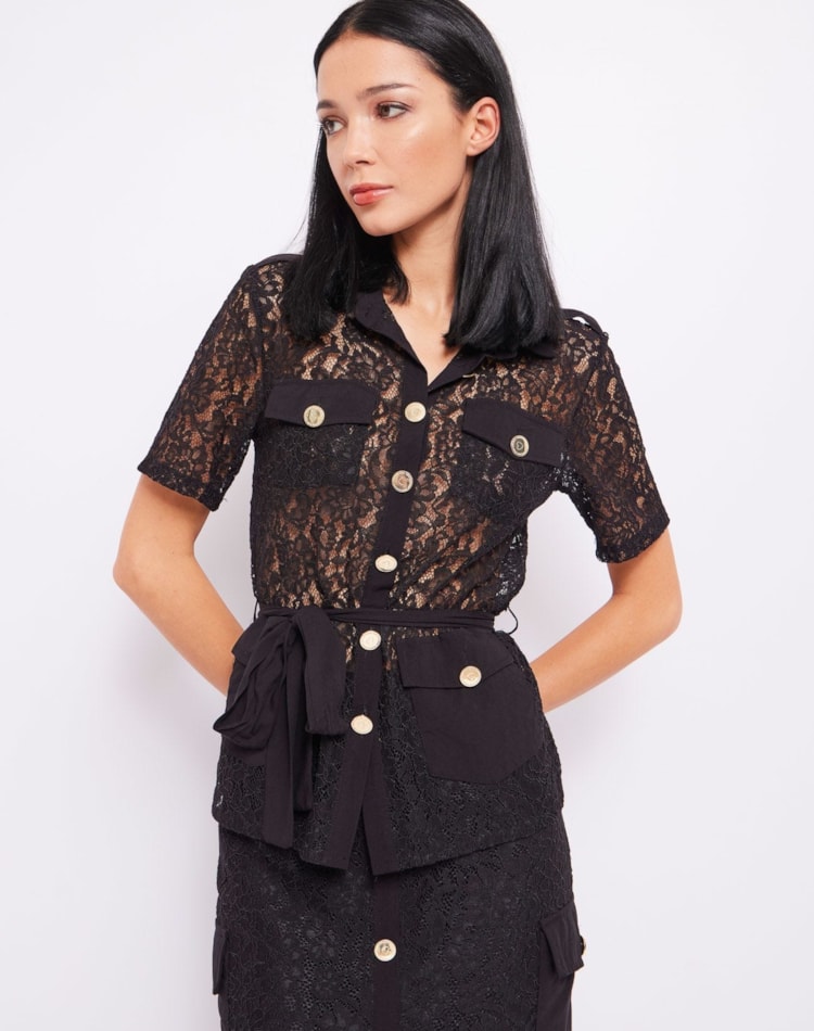 Camisa em renda e musselina