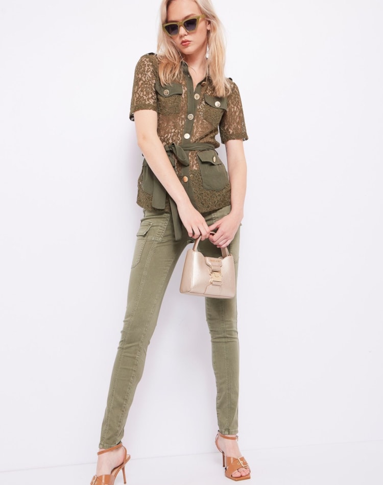 Bolsos no peito com pala e botão