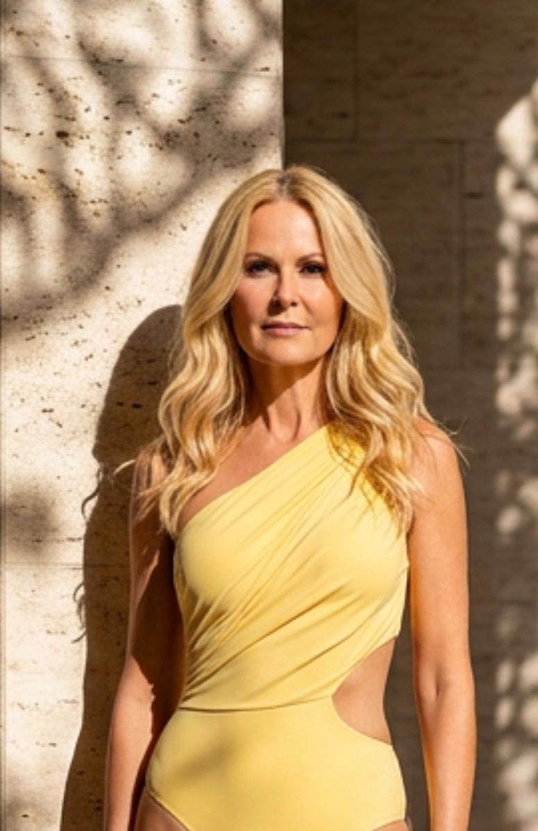 A modelo mede 1,80 m e veste o tamanho S.