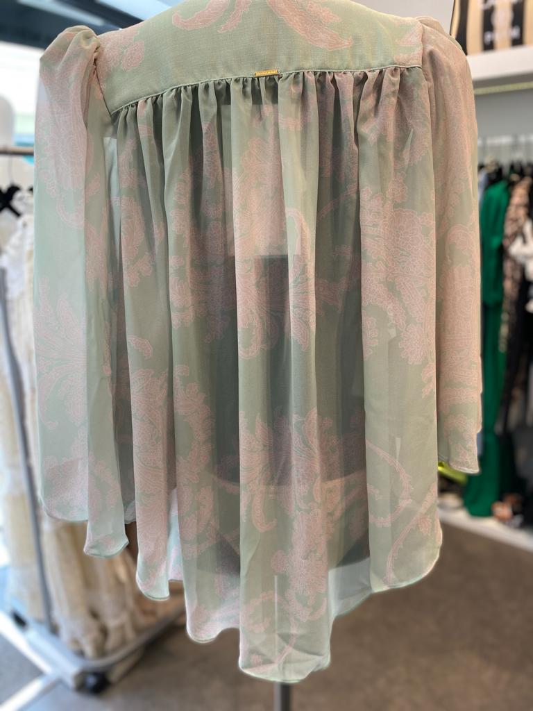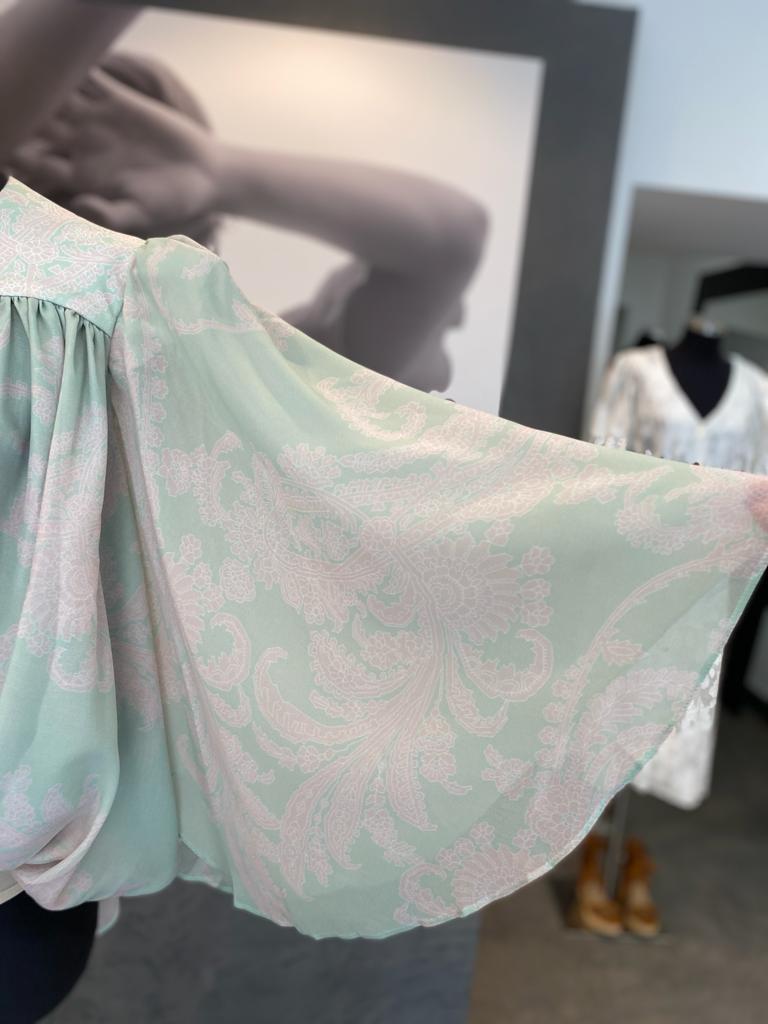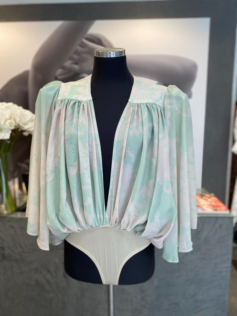 Body estampado fluido e com decote em V