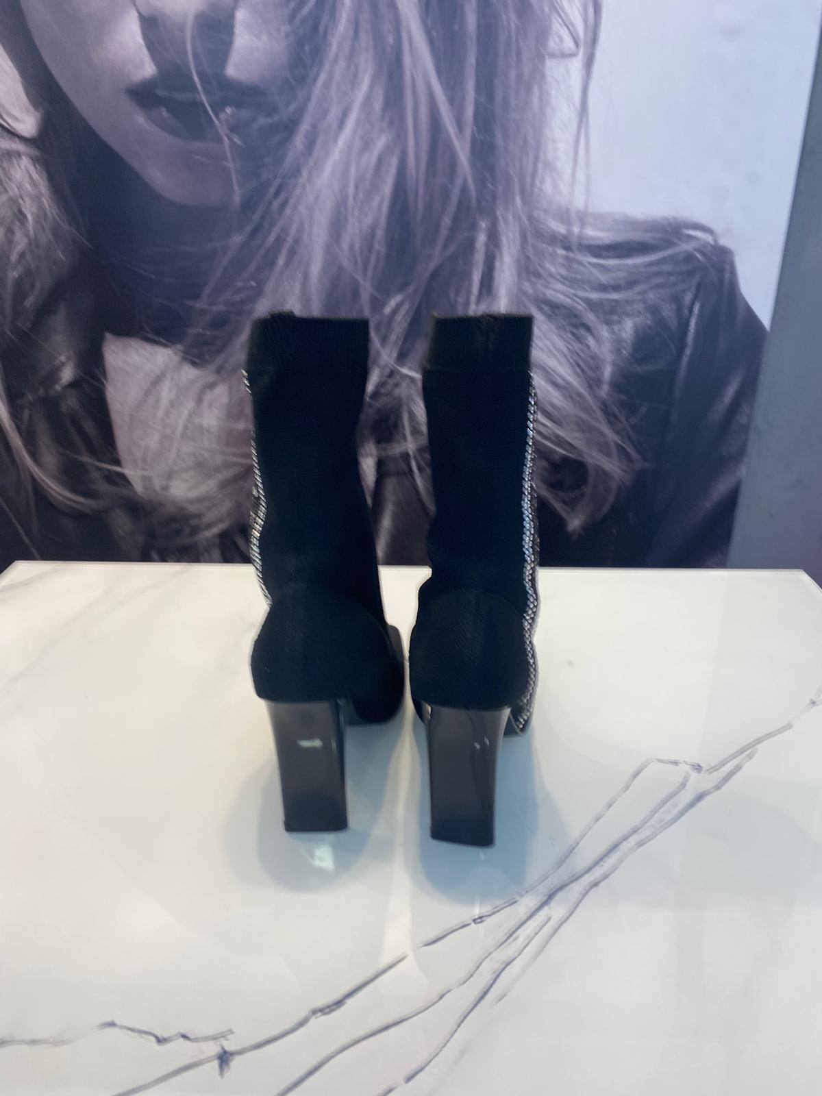 bota feminina feita em knit é uma escolha atemporal e versátil. Fácil de calçar, apresenta salto bloco, shape justo e bico fino. Seu design minimalista expressa sofisticação e se adapta a diferentes ocasiões e estilos. Invista!