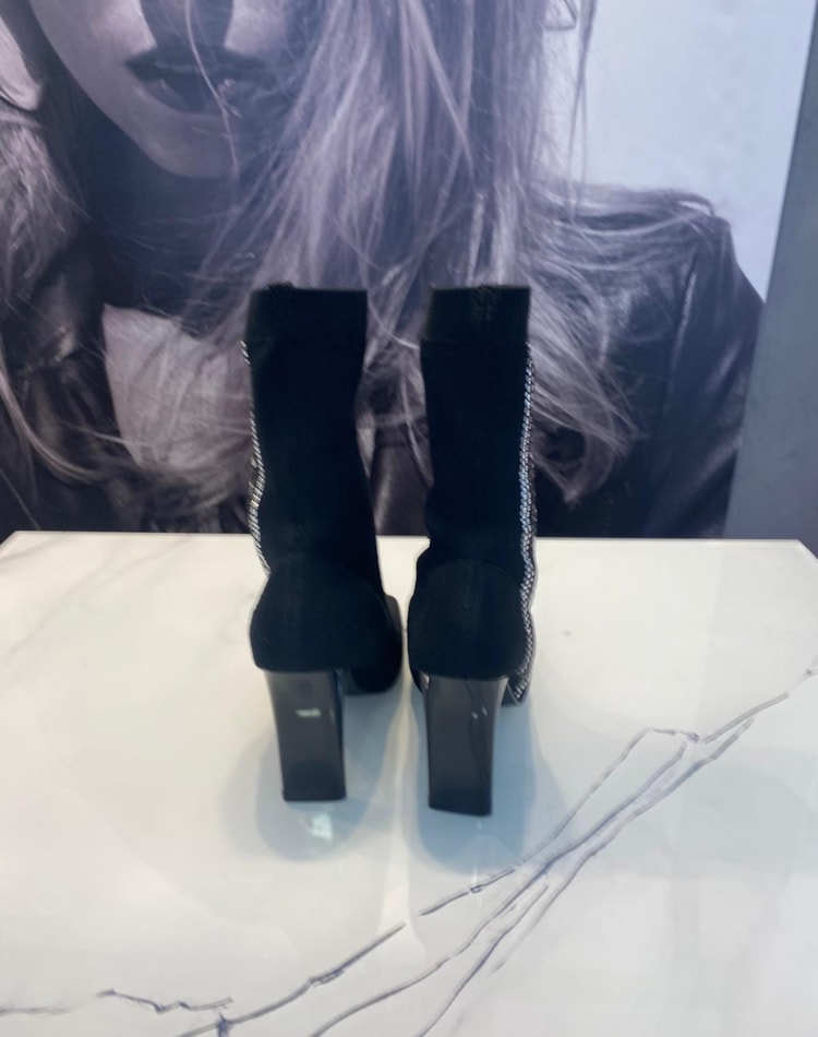 bota feminina feita em knit é uma escolha atemporal e versátil. Fácil de calçar, apresenta salto bloco, shape justo e bico fino. Seu design minimalista expressa sofisticação e se adapta a diferentes ocasiões e estilos. Invista!