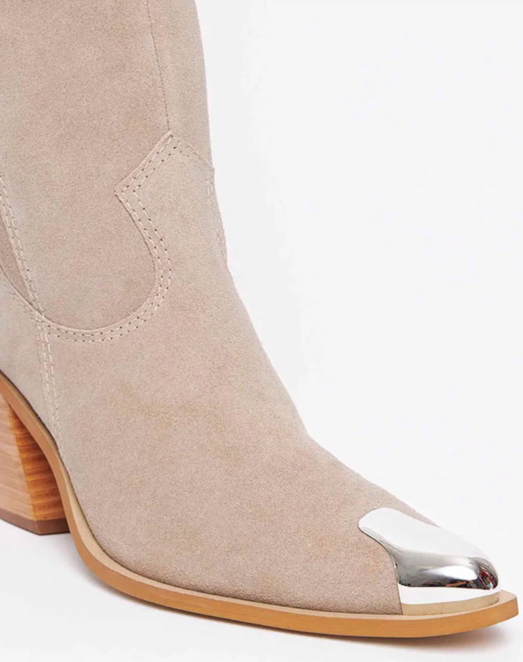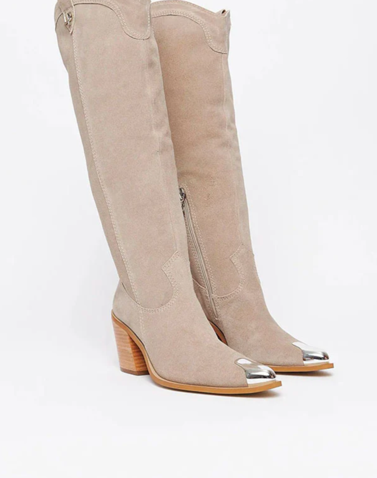bota western, trend do momento, possui cano longo, salto bloco e biqueira metalizada que a torna super elegante! oferece conforto e é a aposta certeira para os seus looks.