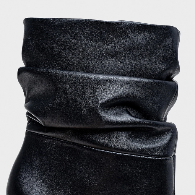 Por que apostar? Essa bota se destaca pelo seu cano slouchy e cano alongado, que traz muita atitude. Como usar? Combine com jaquetas volumosas para um visual mais arrojado, calças que você possa inserir por dentro da bota, criando um efeito interessante no look, e, para um toque ainda mais ousado, aposte em meia-calça com saia de couro.