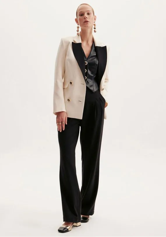 calça é simplesmente incrível! é uma peça em alfaiataria com modelagem reta, que garante um caimento elegante e um conforto sem igual. Além disso, a cintura média e as pregas no cós trazem um charme único. must-have!