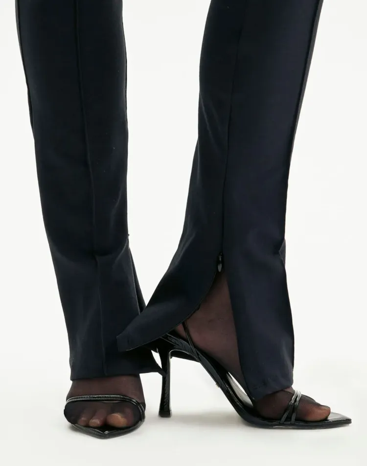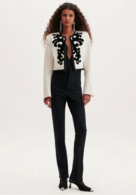 calça slim é a opção perfeita para quem busca valorizar o shape. De cintura alta, a peça se encaixa em looks casuais ou despojados.