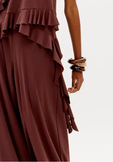 Feita em malha leve de toque suave, a calça aposta na modelagem wide leg com shape amplo e caimento solto no corpo. Possui cintura média que equilibra as proporções e barras finalizadas a fio. Uma peça versátil para acompanhar diferentes produções!
