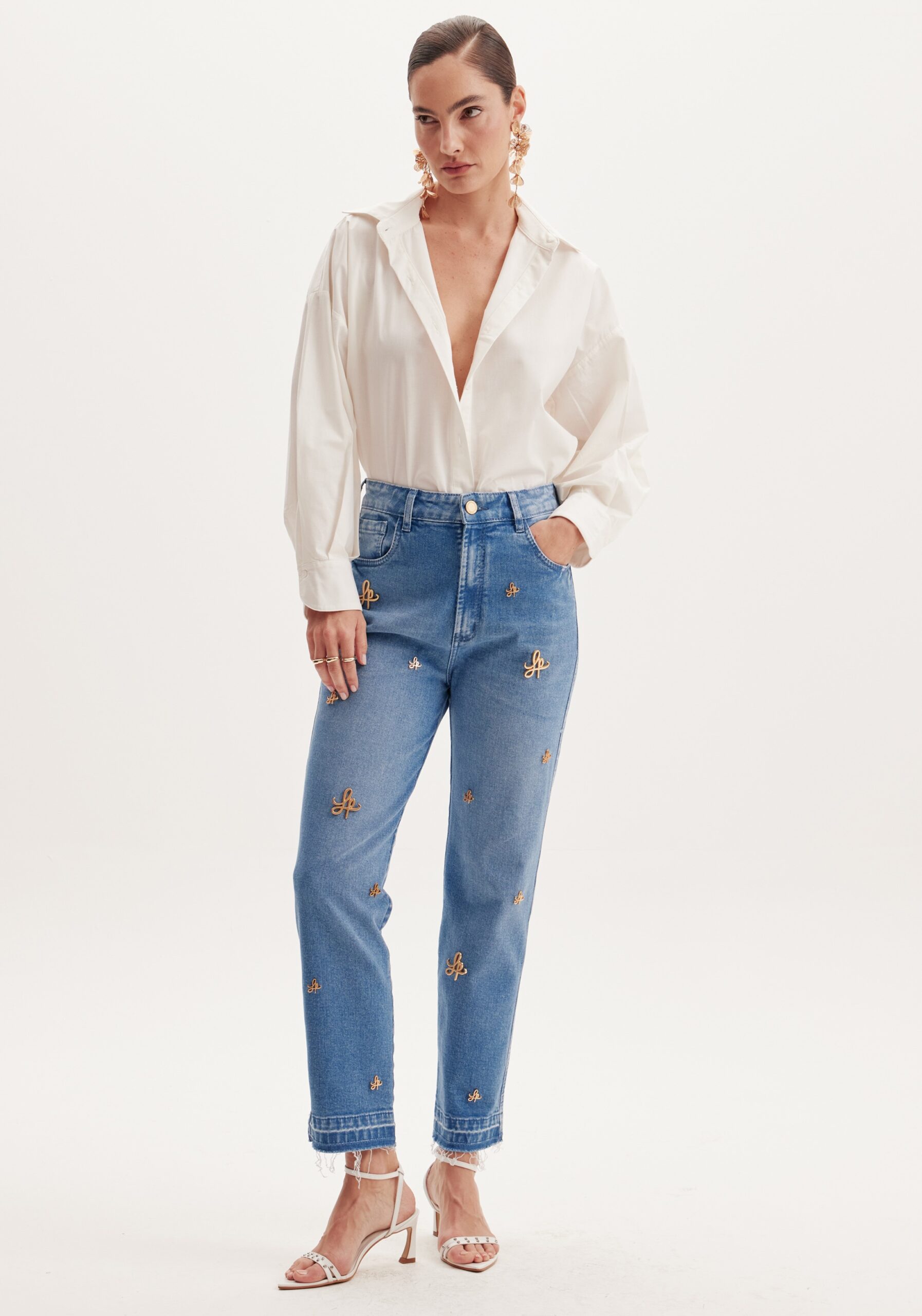 CALÇAS GANGA APLICAÇÃO BORDADO SAHOCO