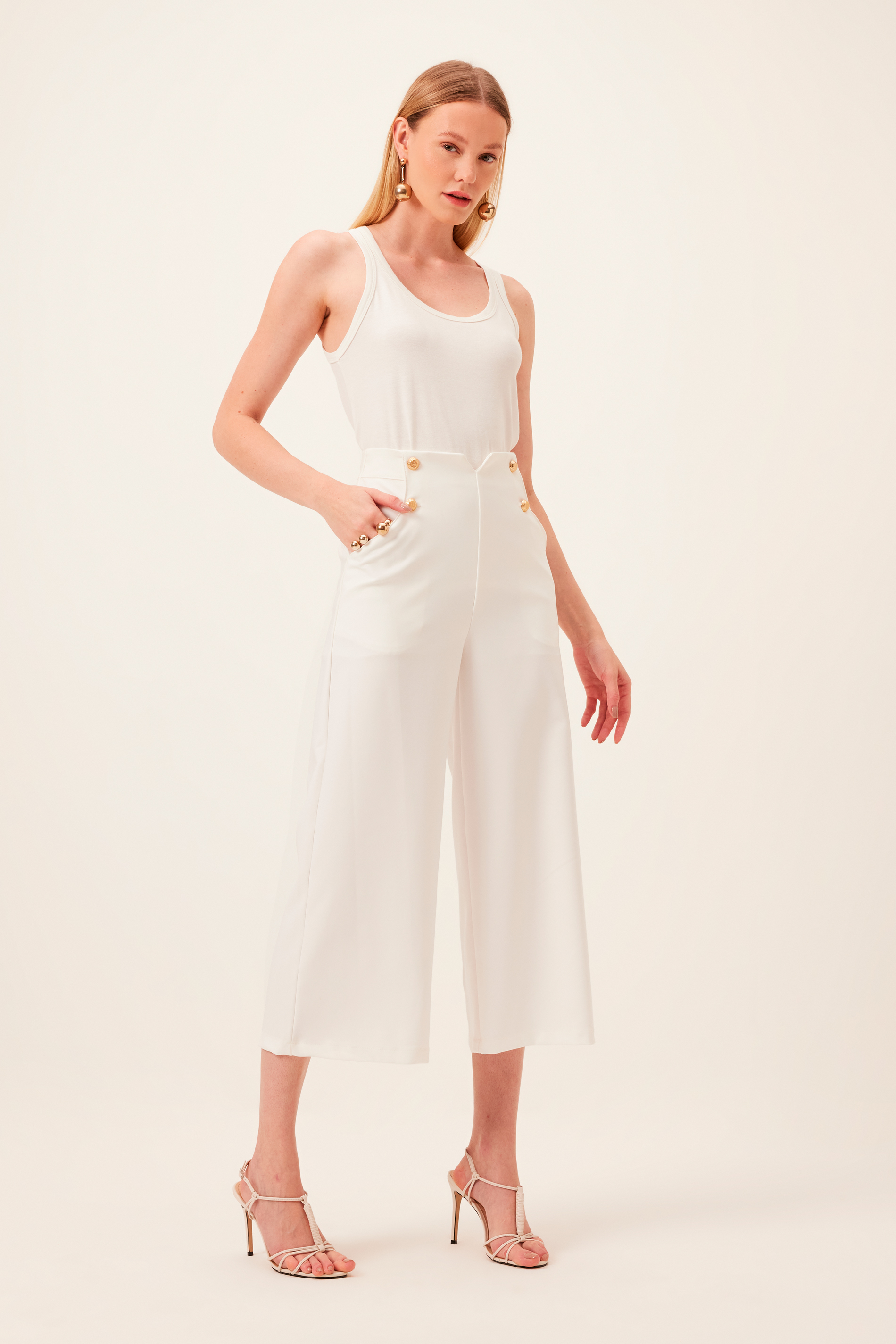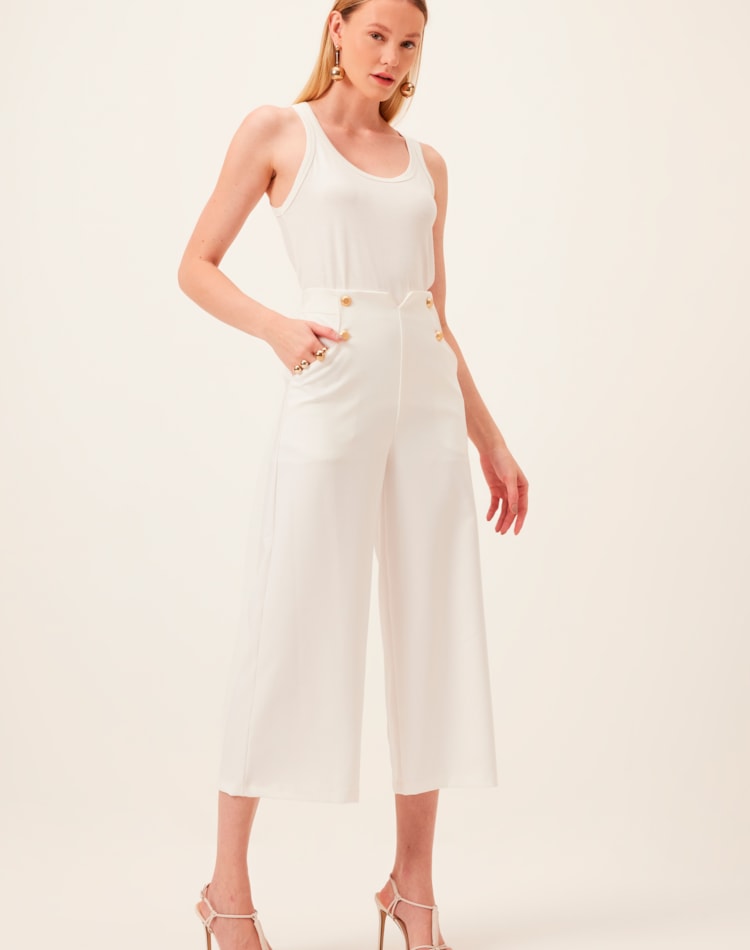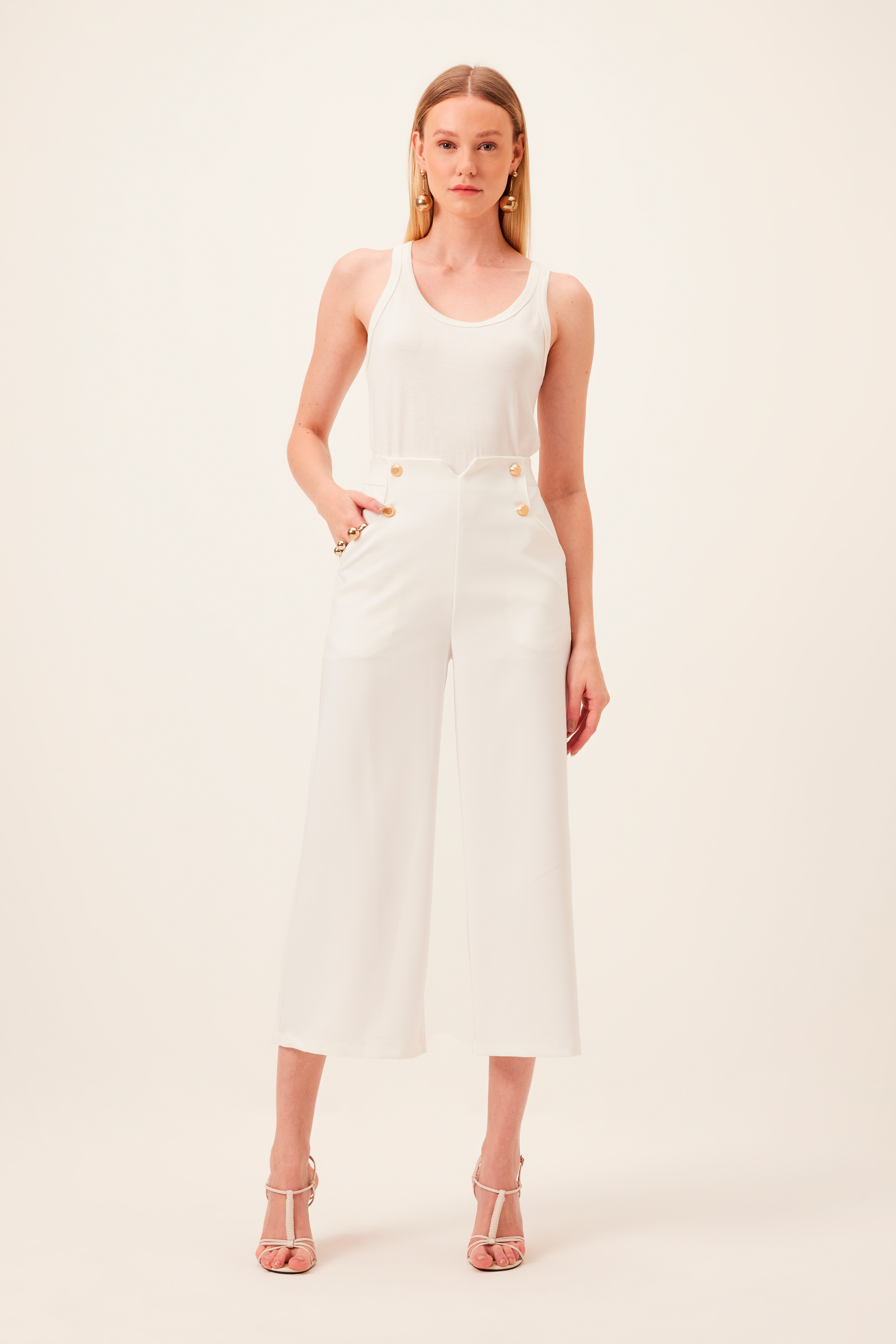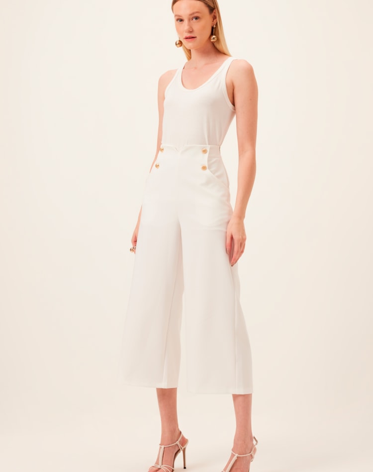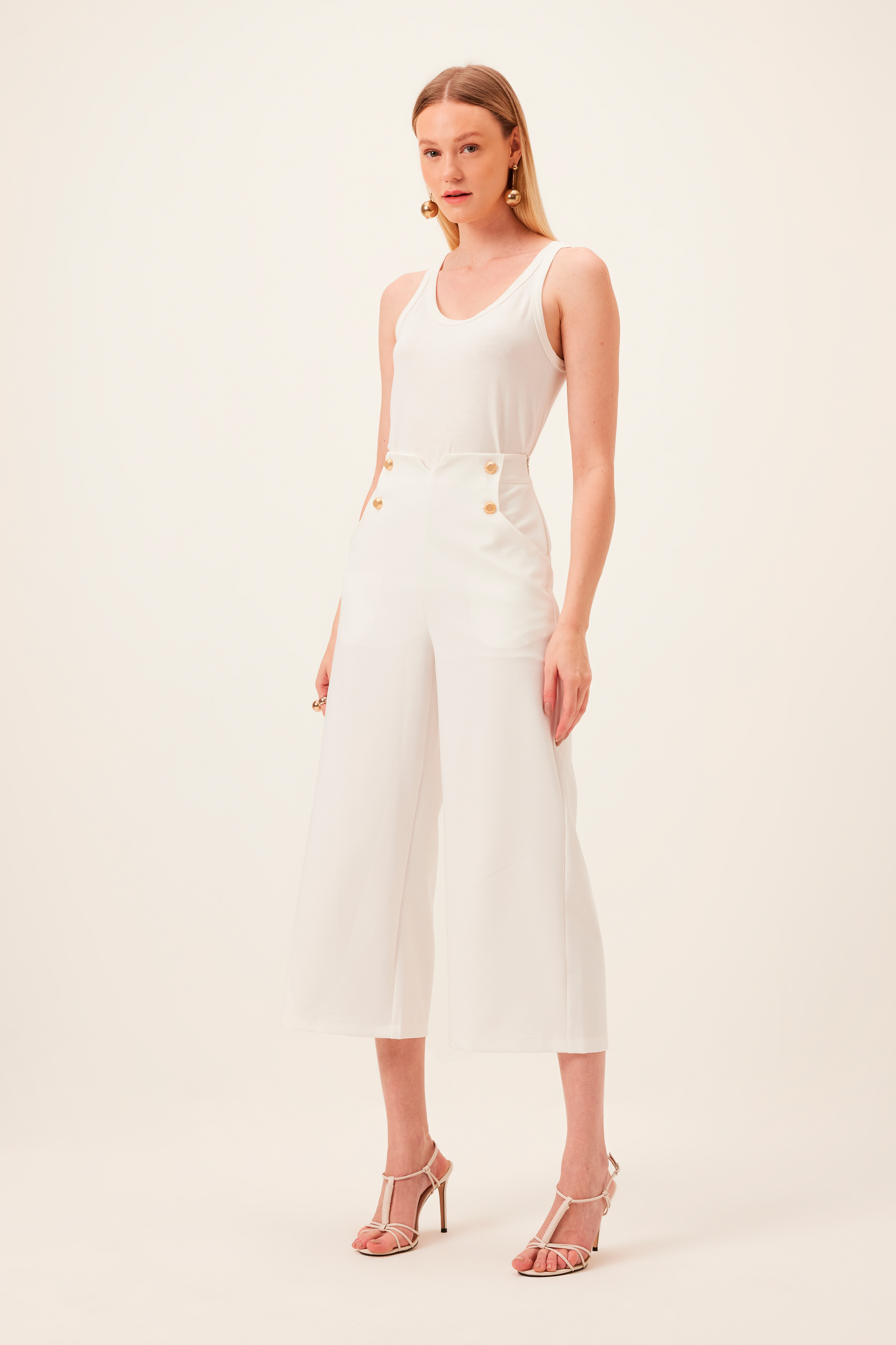 CALÇAS BRANCAS BOTÕES DOURADOS
