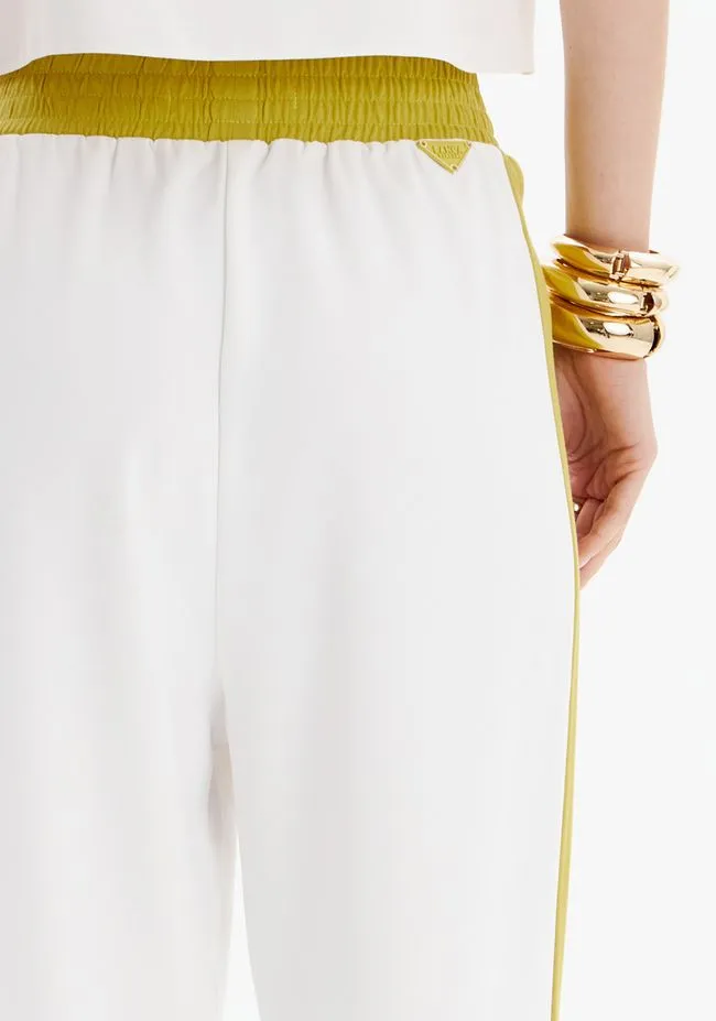 Feita em crepe, a calça jogging apresenta cintura alta, nervuras frontais e elástico no cós e nas barras. Os recortes em tom contrastante adicionam modernidade ao modelo, que combina caimento leve e praticidade. Essencial para o dia a dia!