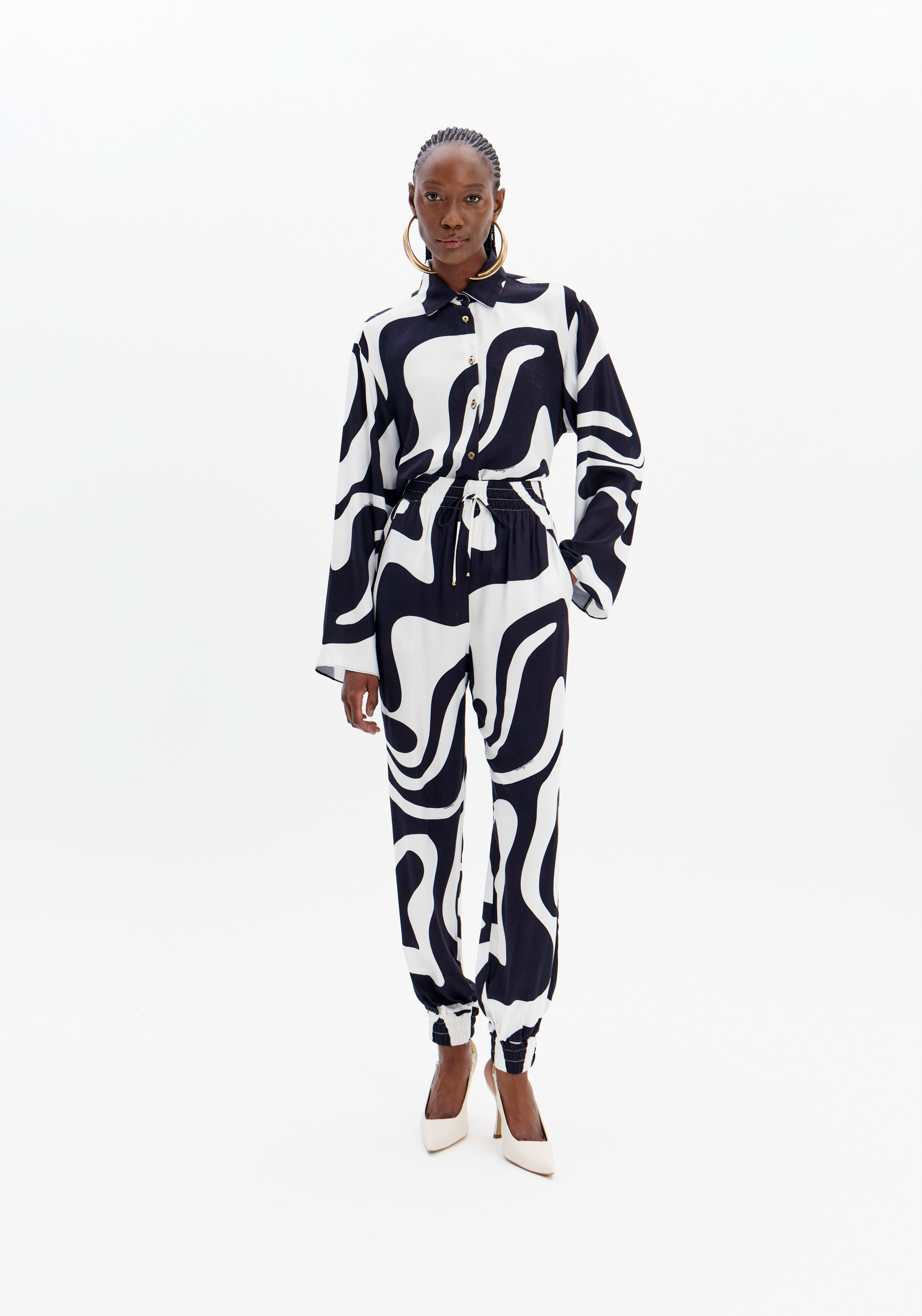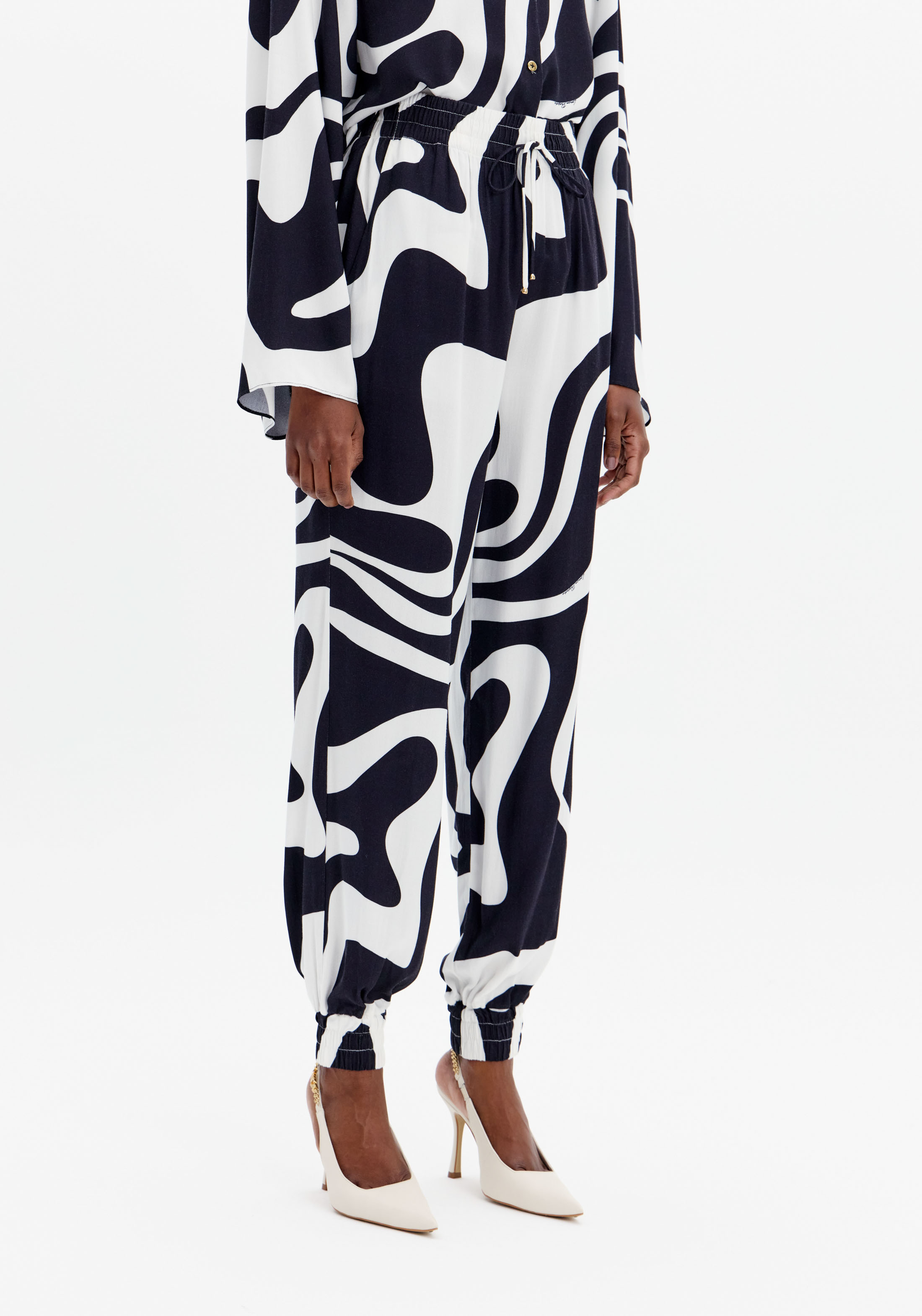 CALÇAS ESTAMPA PRETO E BRANCO LANÇA PERFUME