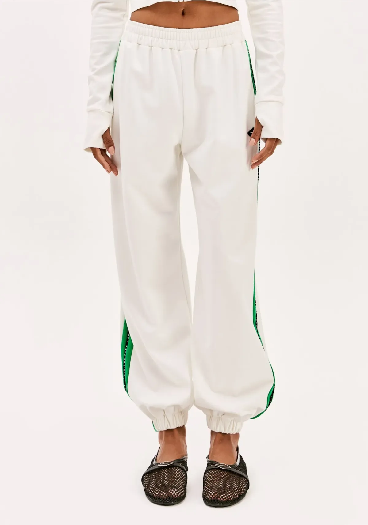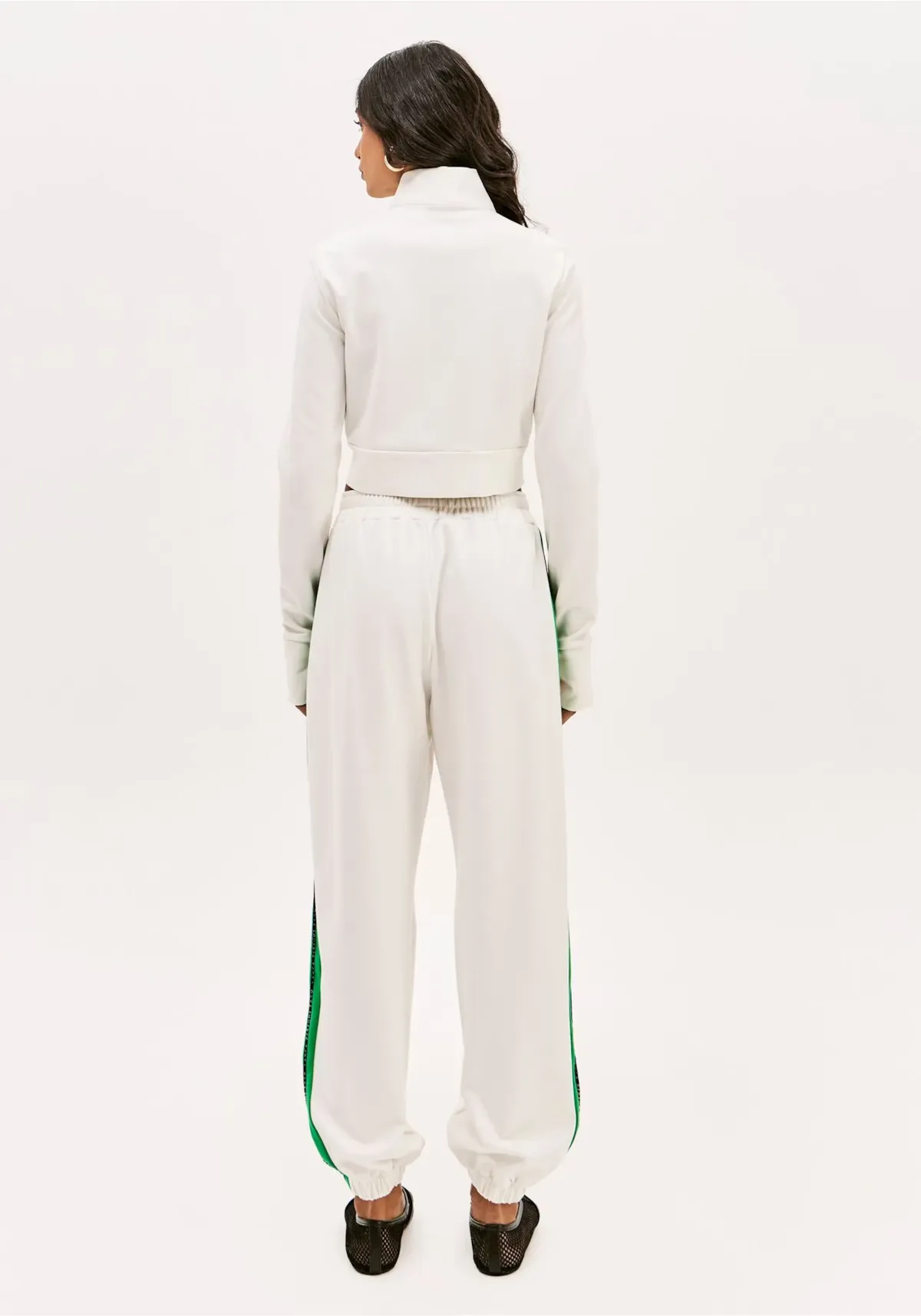 A calça de modelagem jogging em malha encorpada apresenta cintura alta com cós elástico e barras ajustadas que reforçam seu mood esportivo. Os recortes laterais em tom diferenciado ganham destaque com a assinatura easy. Conforto com informação de moda!