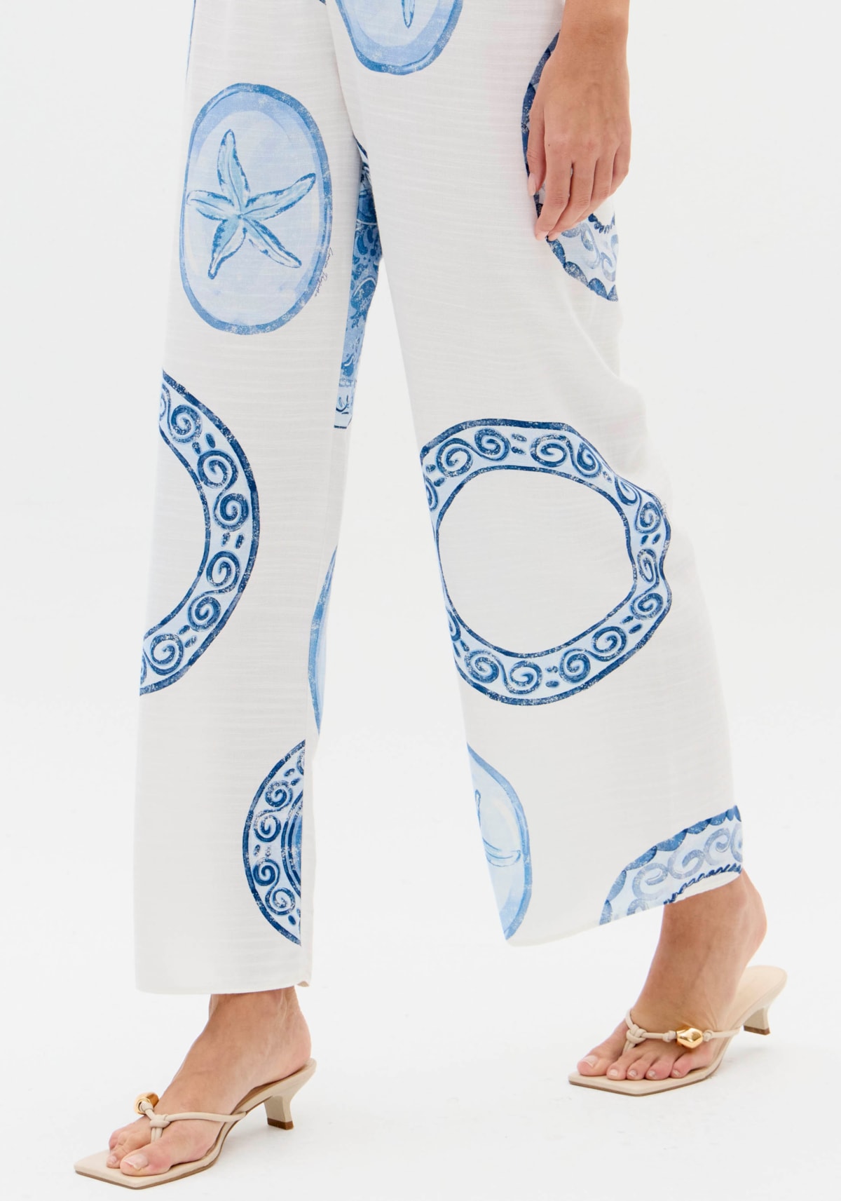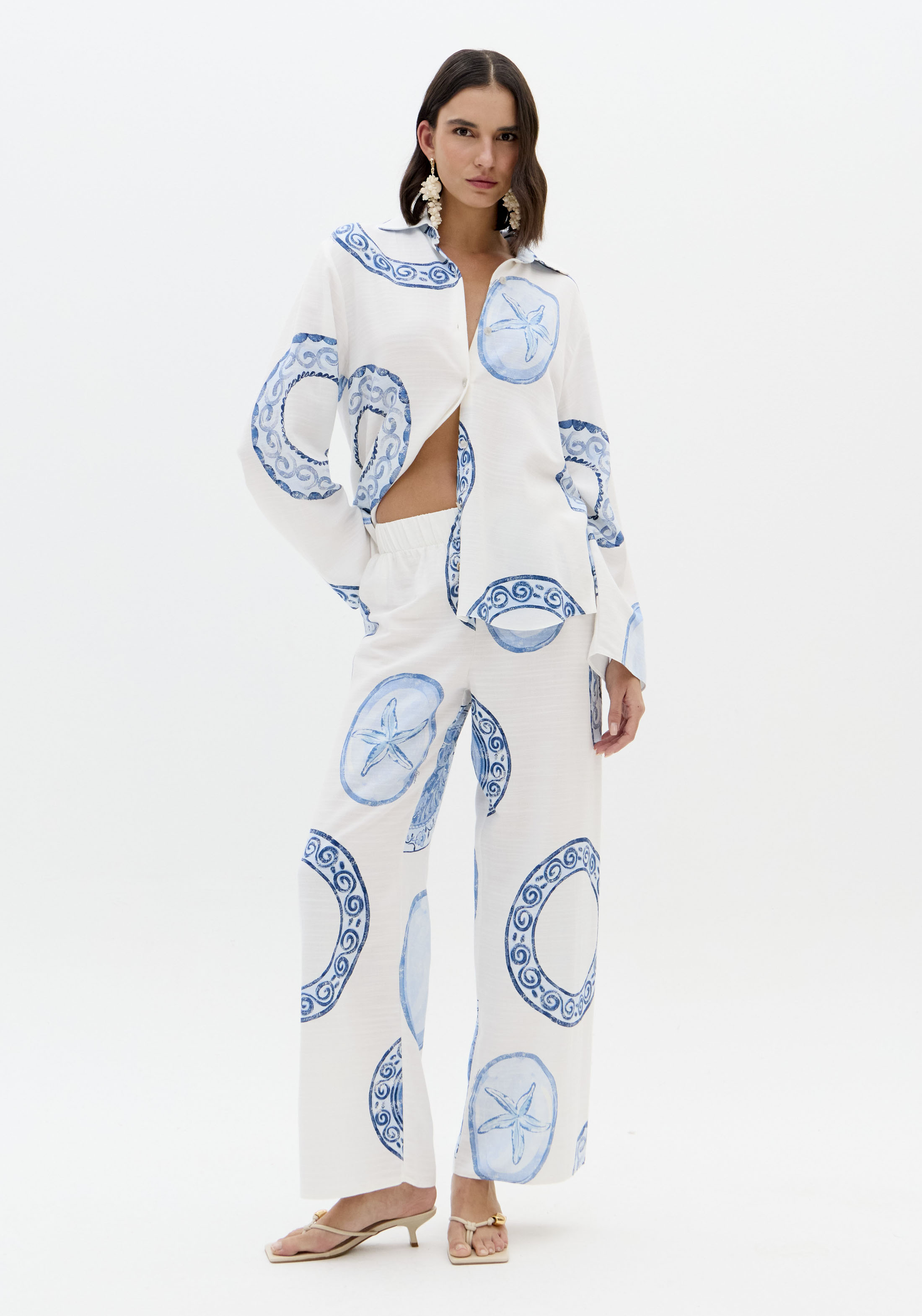 CALÇAS CORTE AMPLO E MOTIVOS FLORAIS FRACOMINA