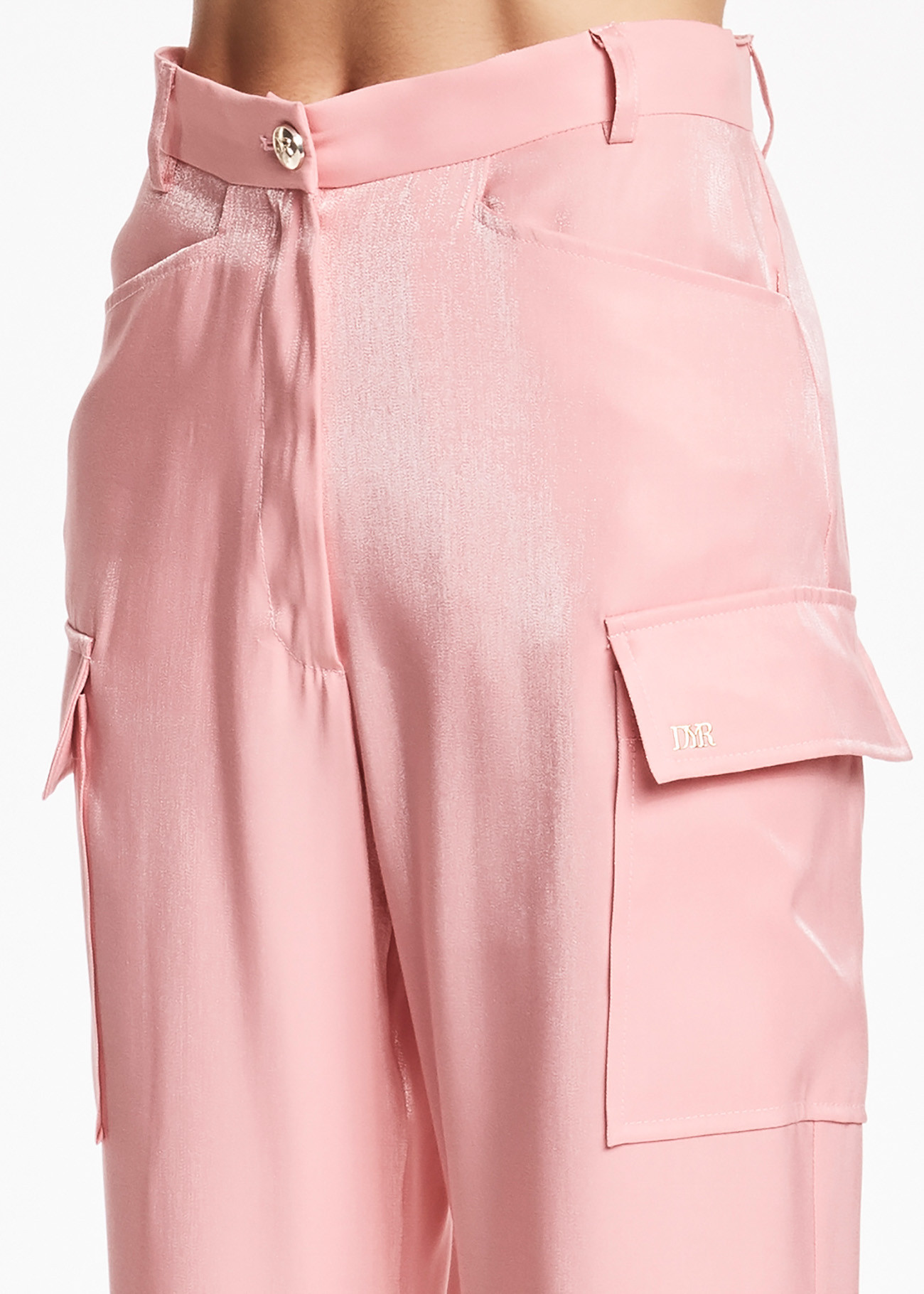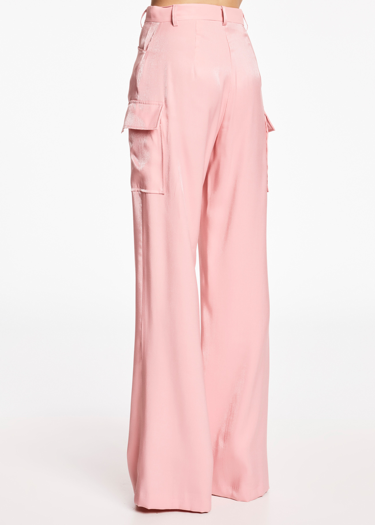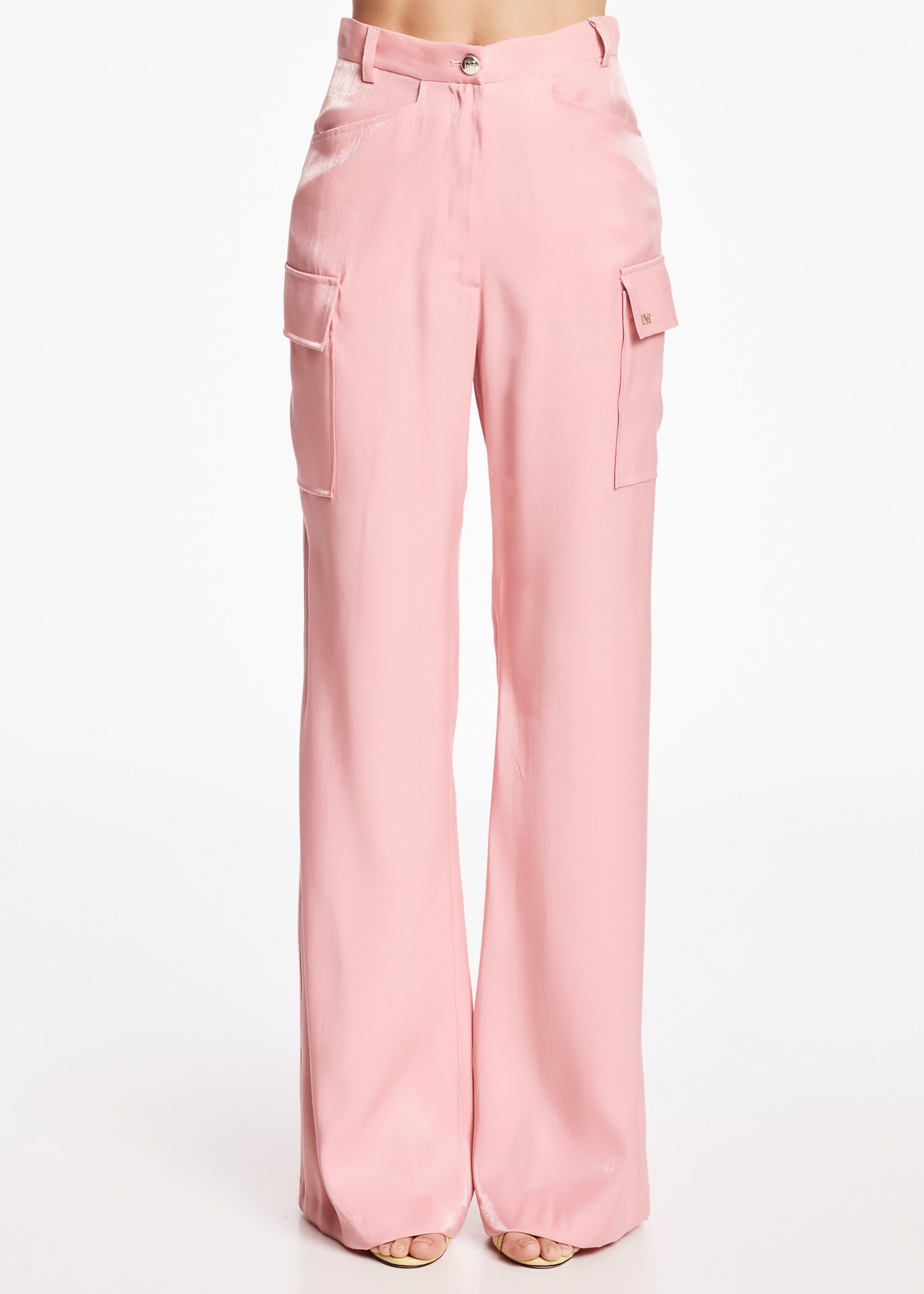 Calças cargo em mistura de viscose. Com bolsos de debrum no quadril e bolsos de patch com aba na parte de trás. Fecho de correr oculto e botão.