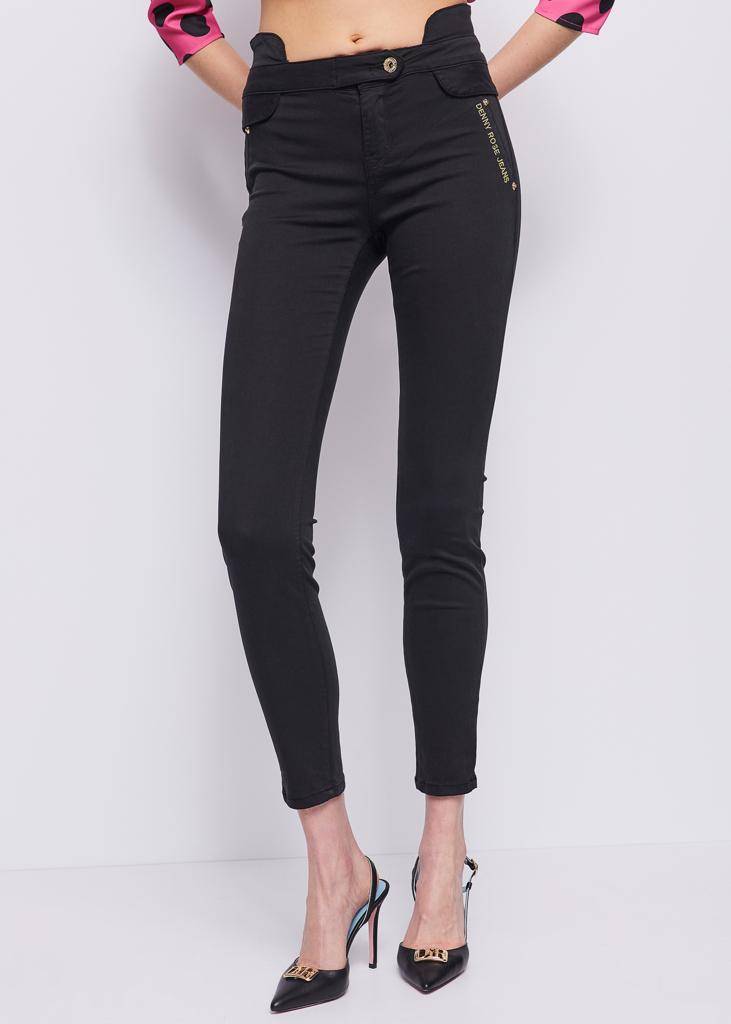 Jeggings em ganga lyocell e algodão índigo médio com acabamento efeito desgastado, logo estampado na cintura e tachas em forma de estrela. Com modelagem justíssima, cintura alta e comprimento regular. Com bolsos na anca e atrás, logótipo patch, lettering DR bordado nos bolsos, fecho de correr oculto e botão. Forrad