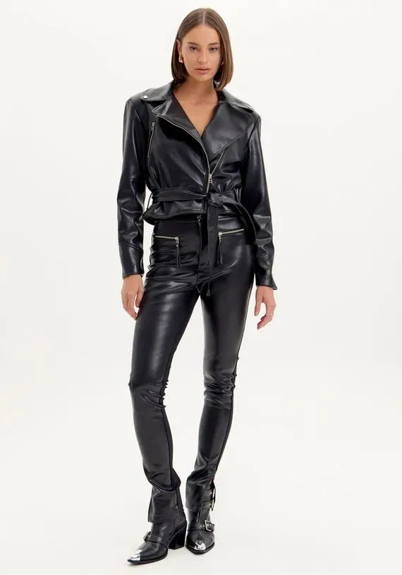 calça feminina com modelagem boot cut apresenta cintura média e fechamento frontal por zíper e botão. com shape ajustado que valoriza a silhueta, é uma escolha autêntica para looks de atitude. Combine com bota e brilhe!