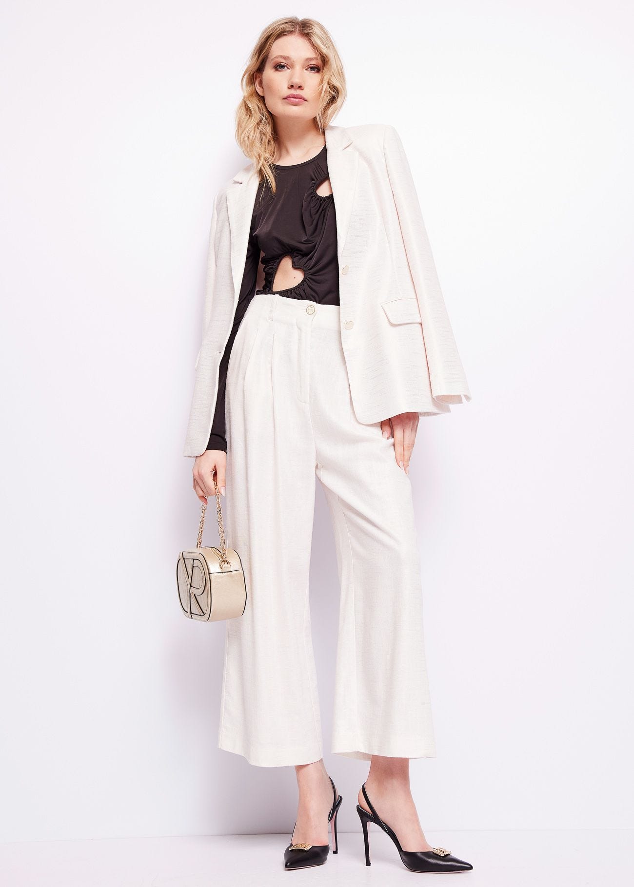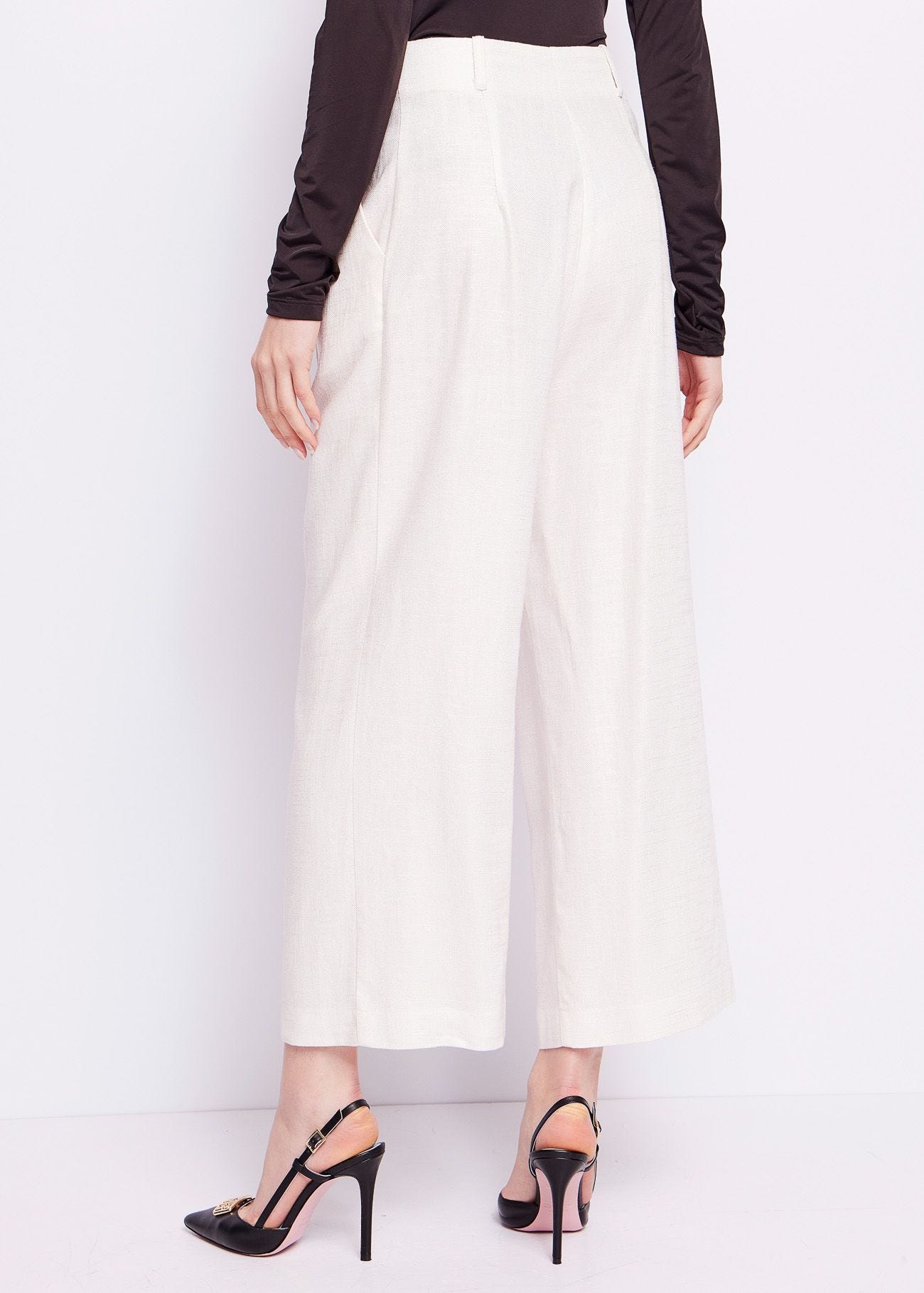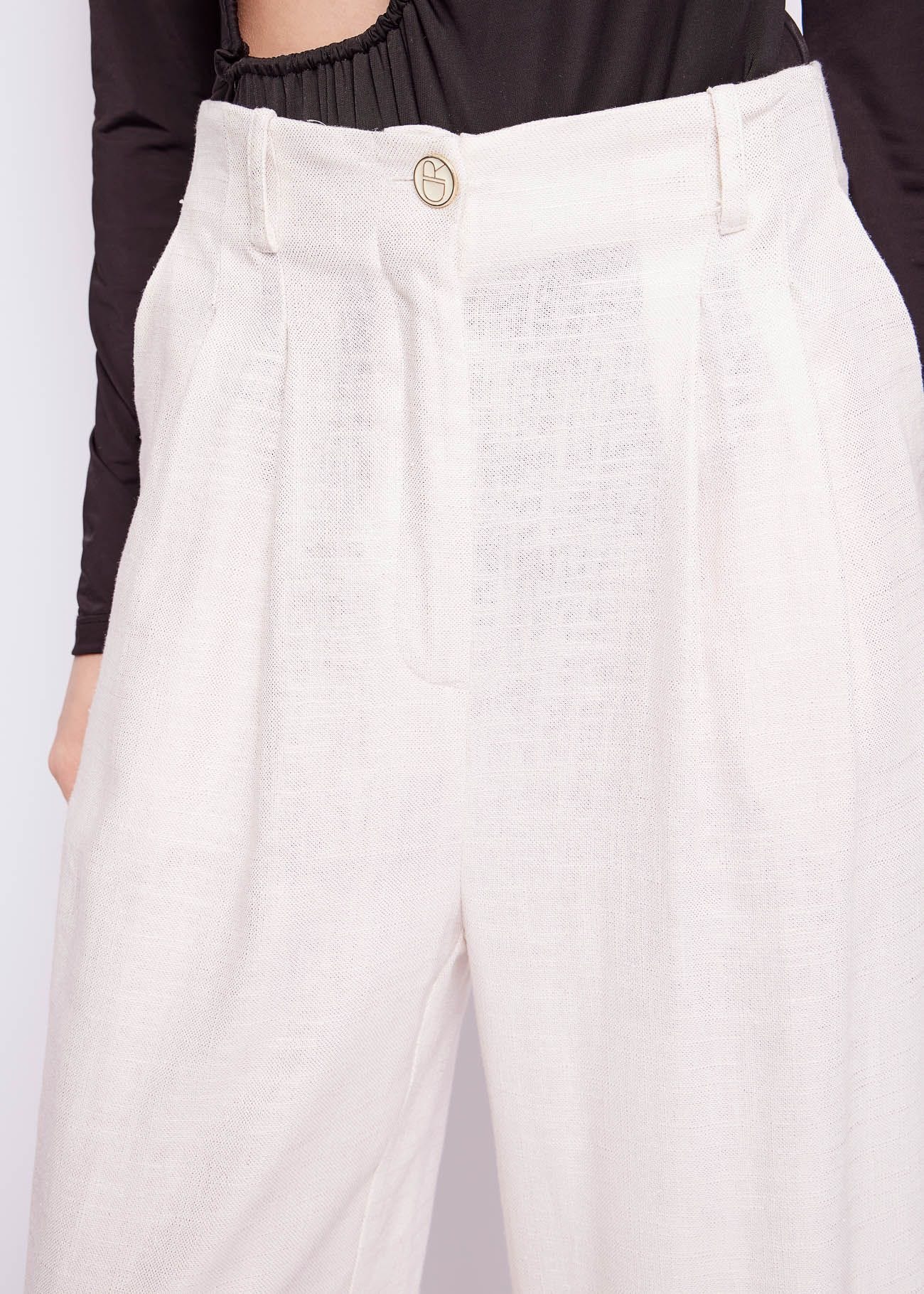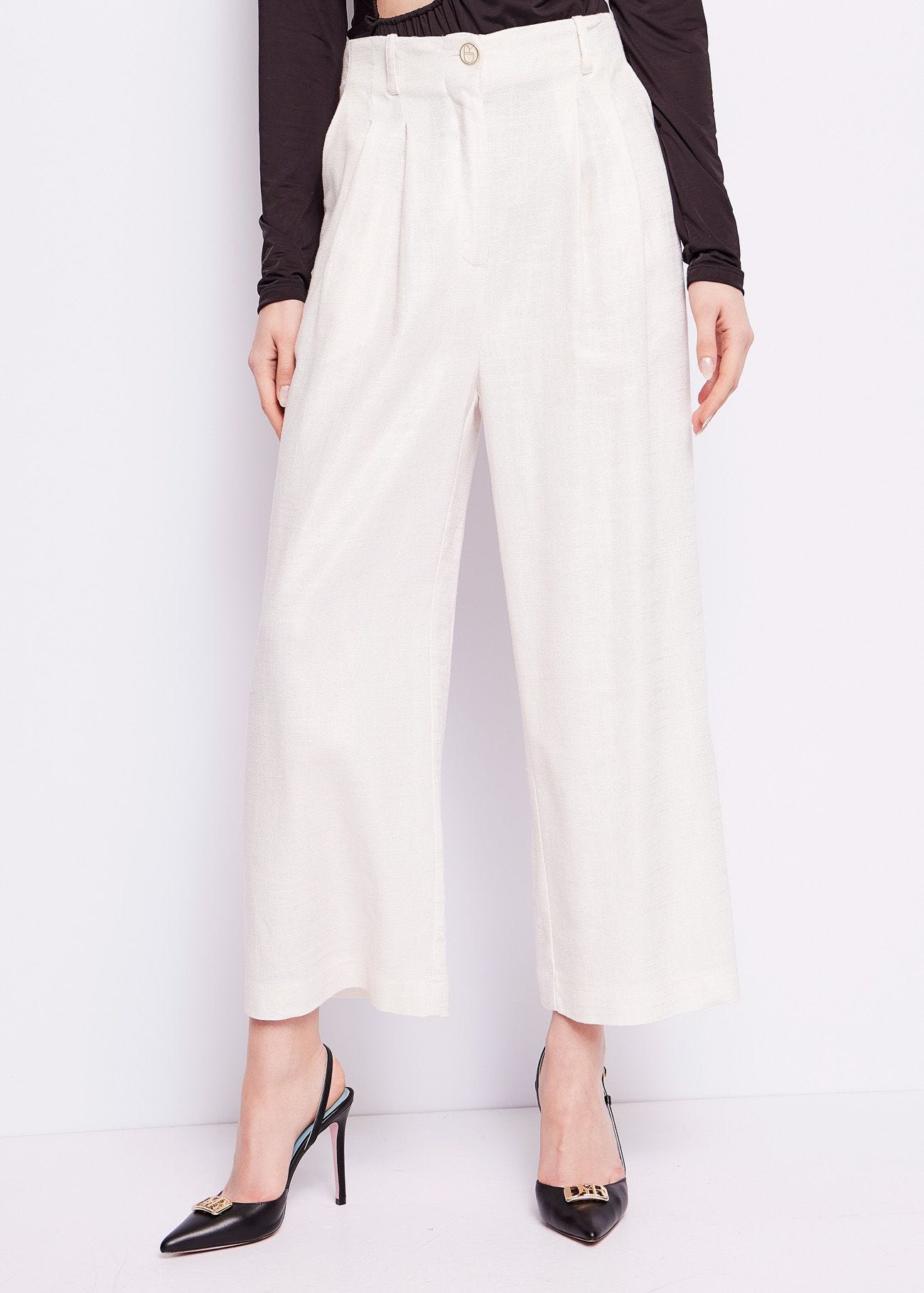 Calças de mistura de linho com pregas e pregas engomadas. Com bolsos laterais, fecho de correr oculto e botão