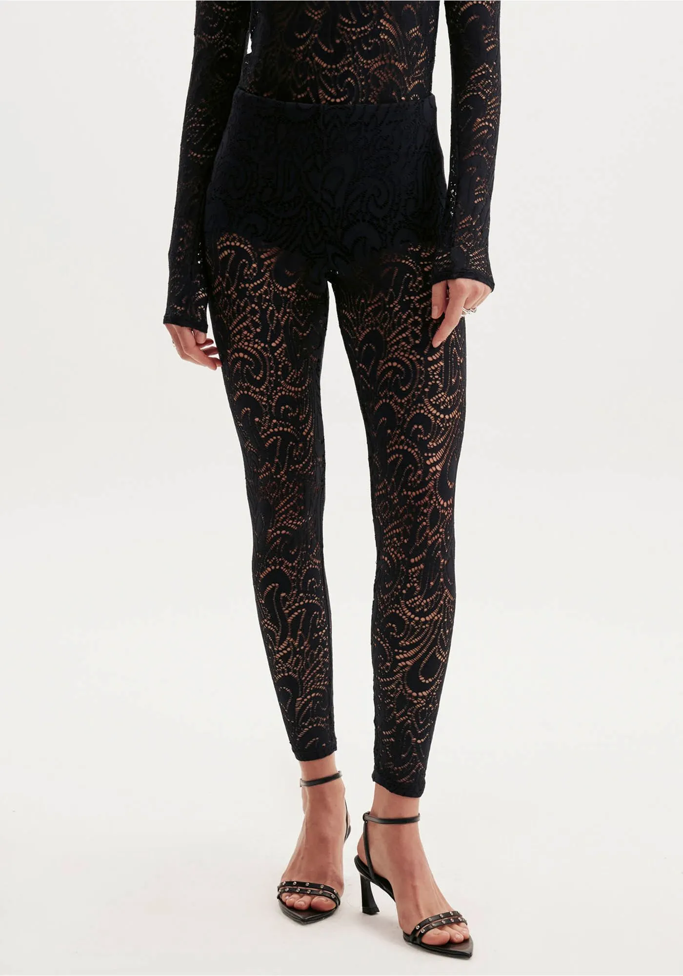 Calça legging confeccionada em renda é uma peça delicada e impactante. Crie looks fashionistas com essa peça!