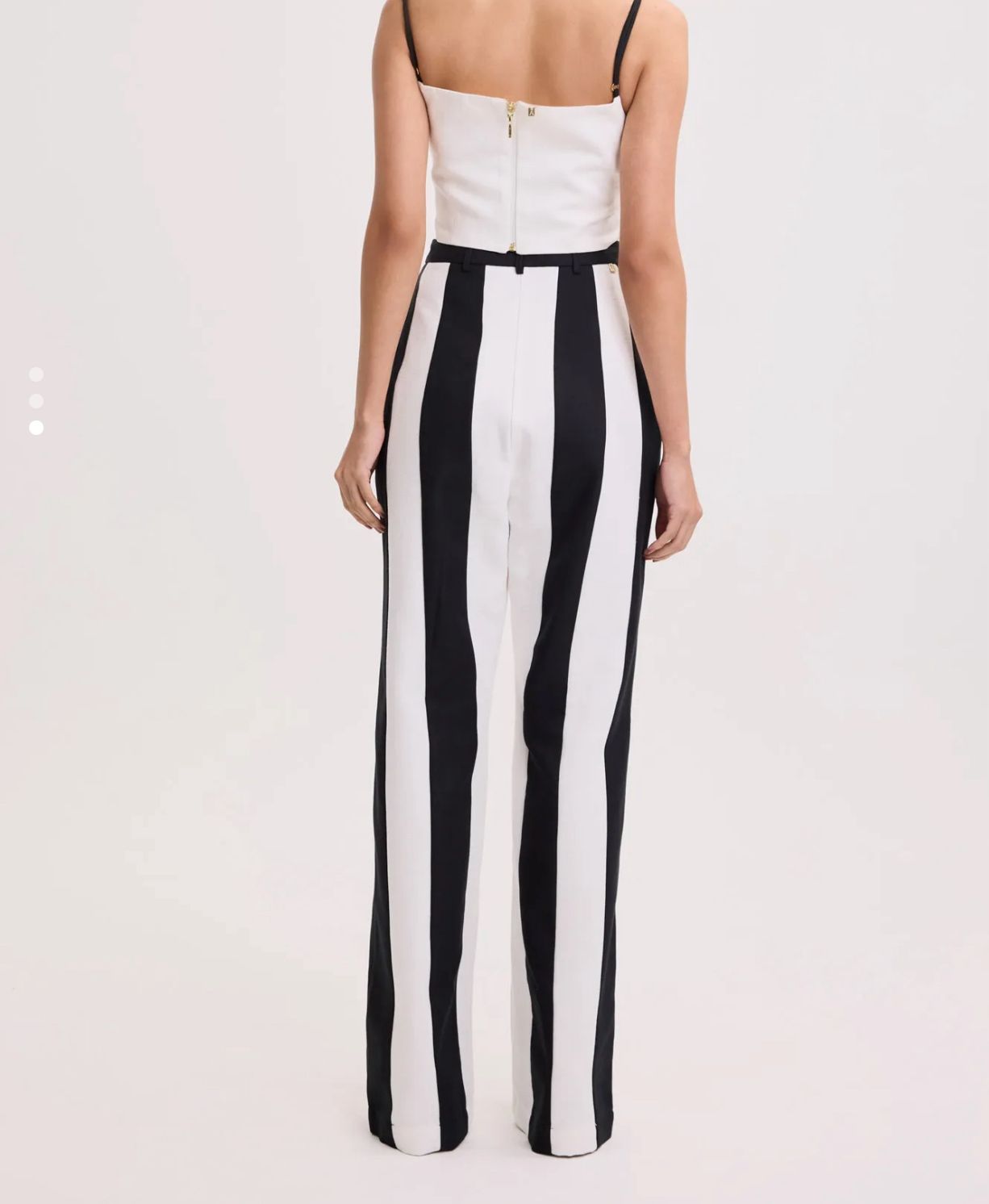 A calça reta de alfaiataria combina sofisticação e modernidade. Com cintura alta, bolsos funcionais, cós com passantes e listras elegantes, é uma escolha versátil para composições estilosas e atemporais.