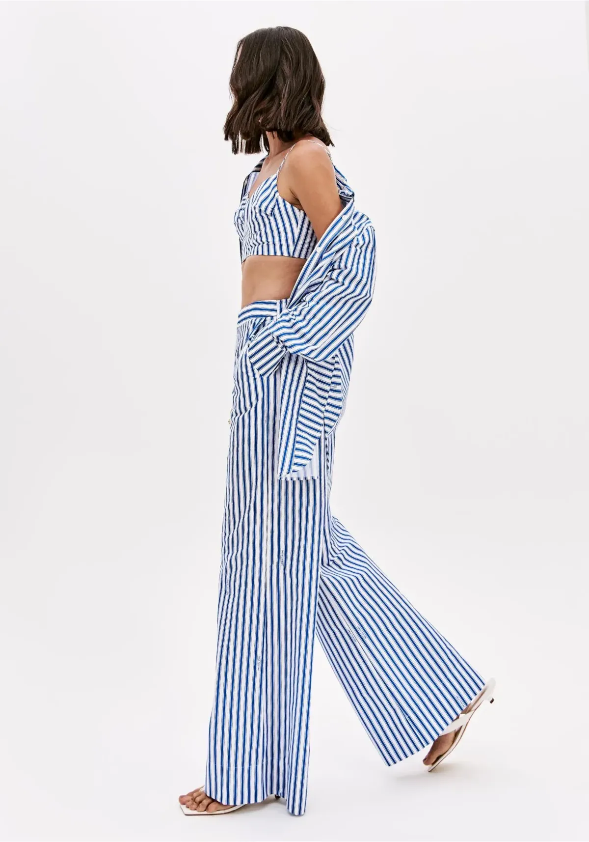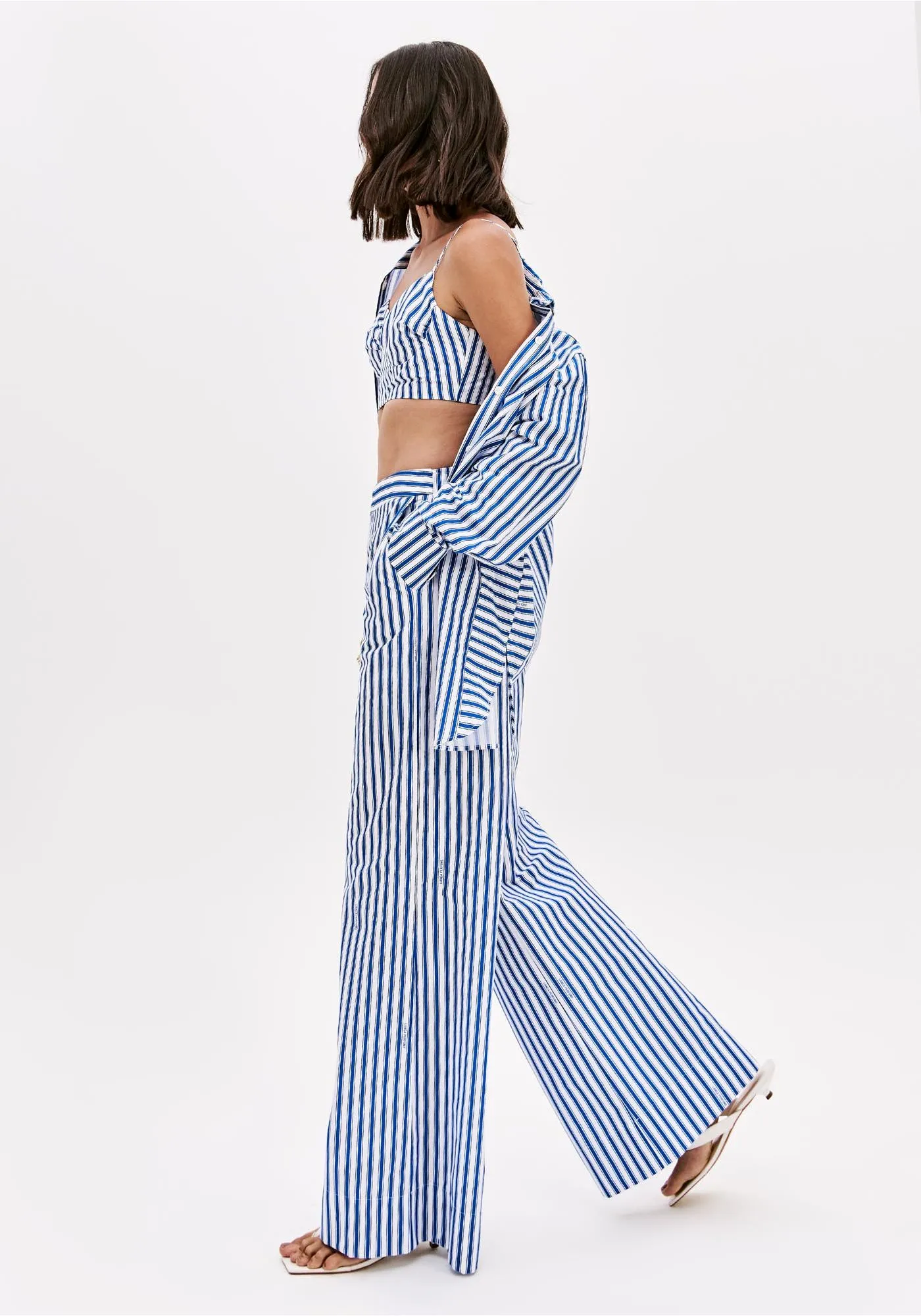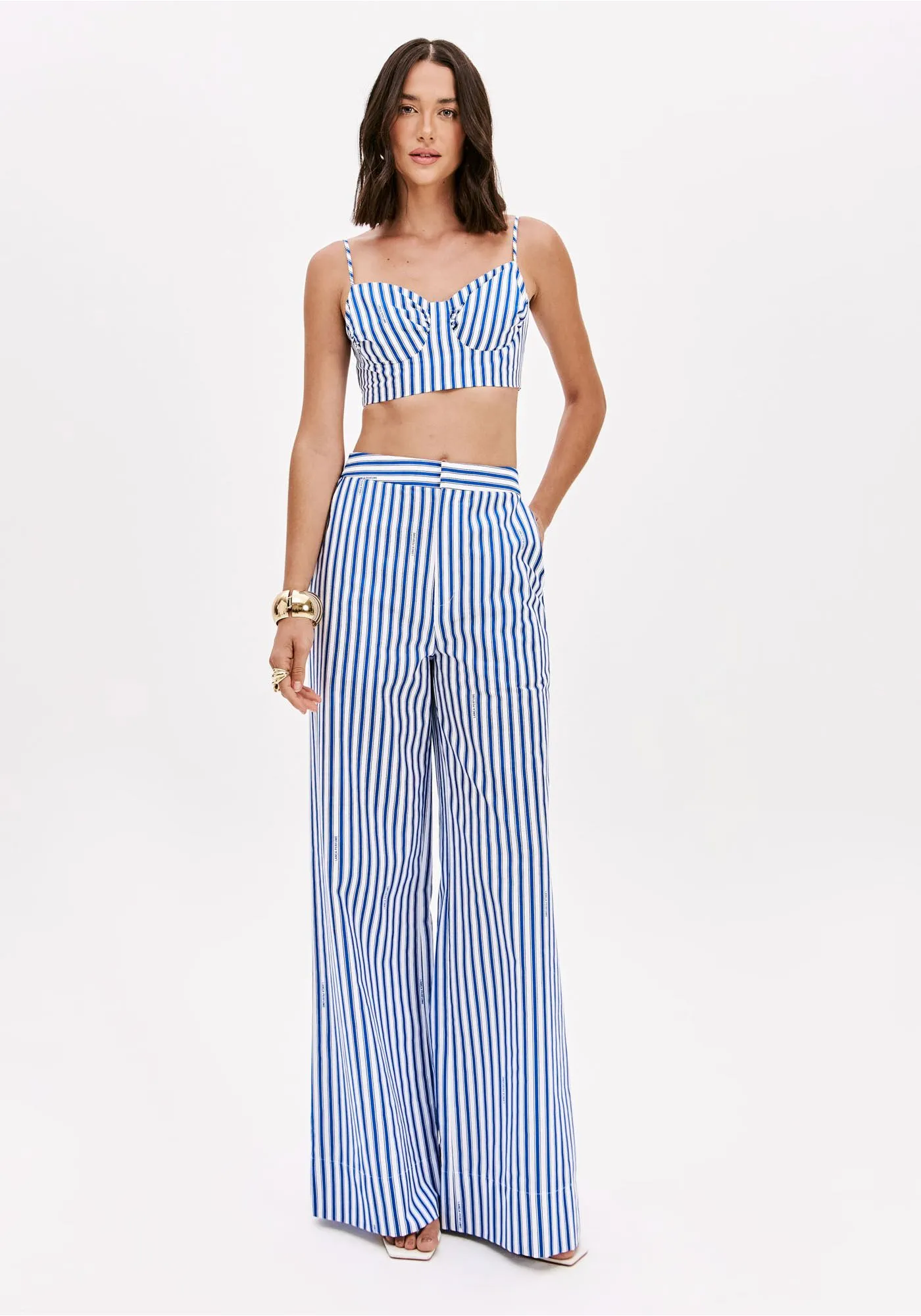 A calça de alfaiataria é feita em tricoline, um tecido plano e leve sem elasticidade. Possui cintura alta, fechamento frontal e bolsos funcionais, além de caimento solto no corpo que garante conforto no uso. Aposte nessa proposta sofisticada!
