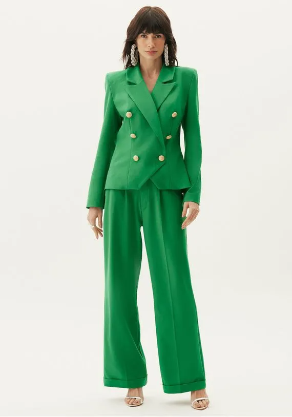 Calça em modelagem wide leg apresenta cintura alta, cós com passantes e fecho por botão frontal. uma opção atemporal e elegante. Combine com looks monocromáticos e arrase!