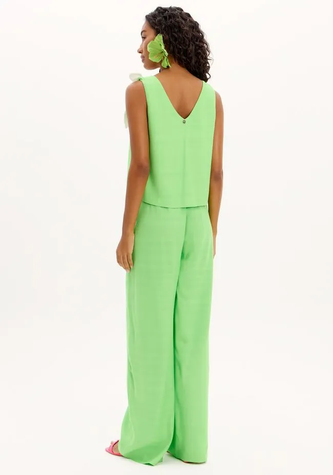 A calça com modelagem reta possui cintura alta e cós elástico, garantindo praticidade e conforto. Seudesign versátil feito em tecido leve a torna uma peça-chave no closet. Perfeita para diversas combinações, das casuais às mais elegantes. Aposte!