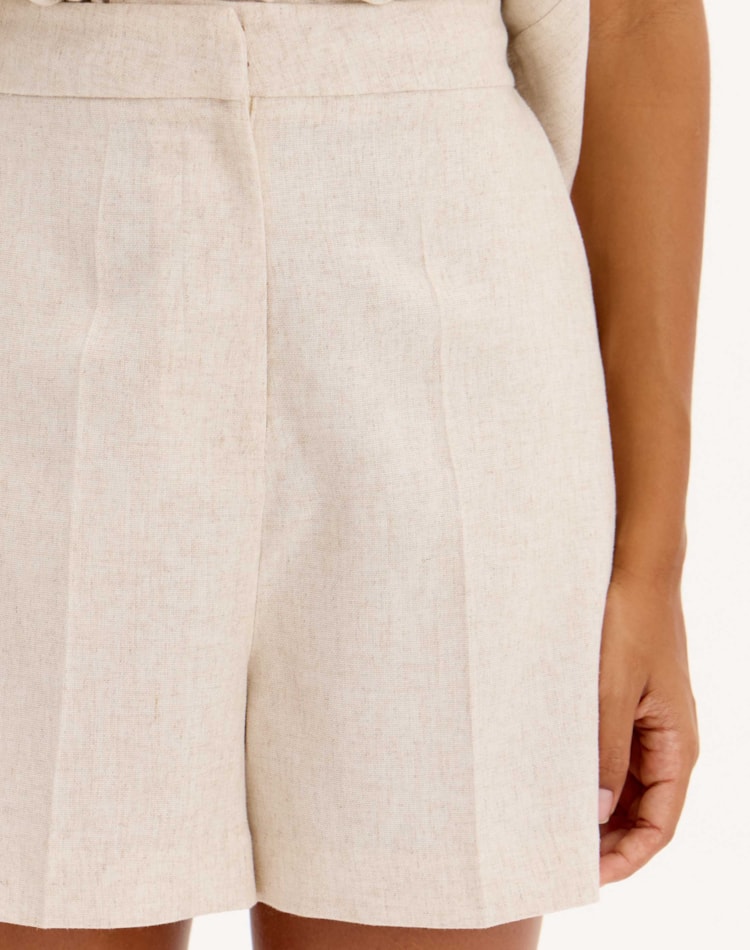42% viscose 38% poliéster 18% linho 2% elastano; forro 96% poliéster 4% elastano