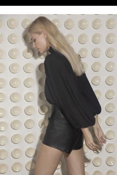 Calçoes cor preta em ecopele , com dois bolsos a frente