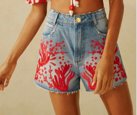 CALÇÕES HOT PANTS JEANS FLORES
