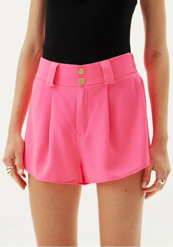 Calções em alfaiataria possui cintura média, cós com passantes e botões duplos. Aposte!