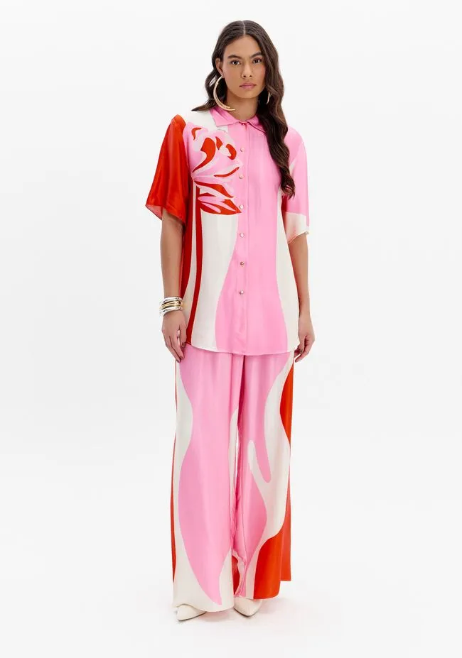 A camisa estampada com modelagem alongada possui mangas curtas e fechamento por botões. Feita em tecido leve e fluido, é a escolha certa para quem busca conforto e elegância em uma peça de estilo contemporâneo