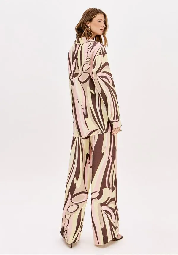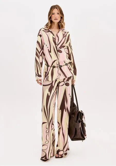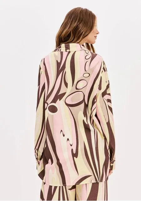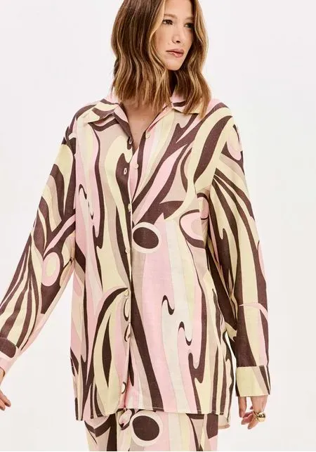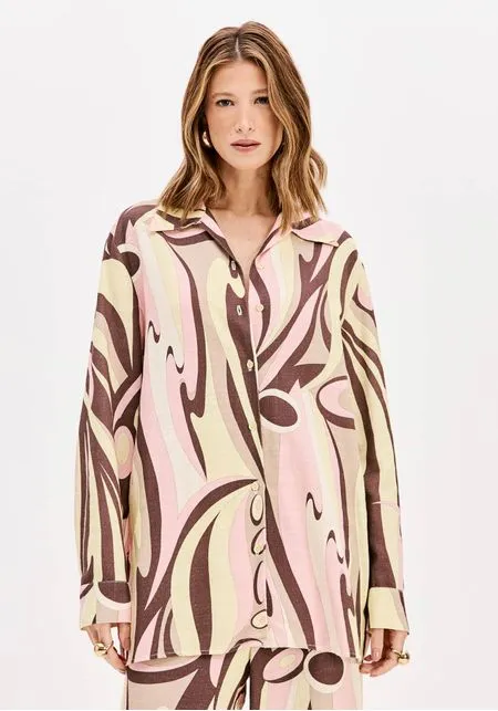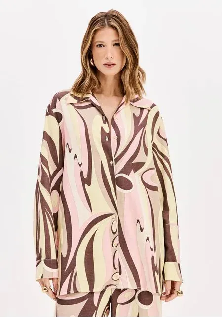 A camisa estampada é feita em tecido plano leve com modelagem alongada e caimento solto no corpo. conta com gola tradicional, mangas longas e fechamento por botões. A estampa moderna garante protagonismo em qualquer produção. Renove suas composições!
