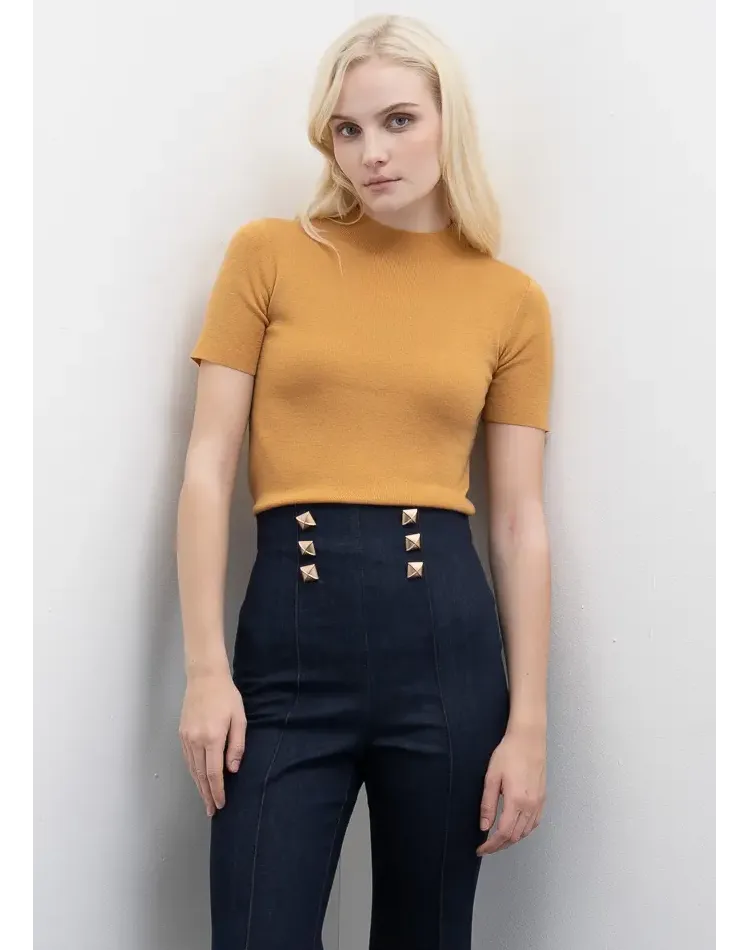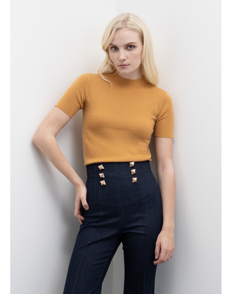 Camisola de manga curta com gola alta.