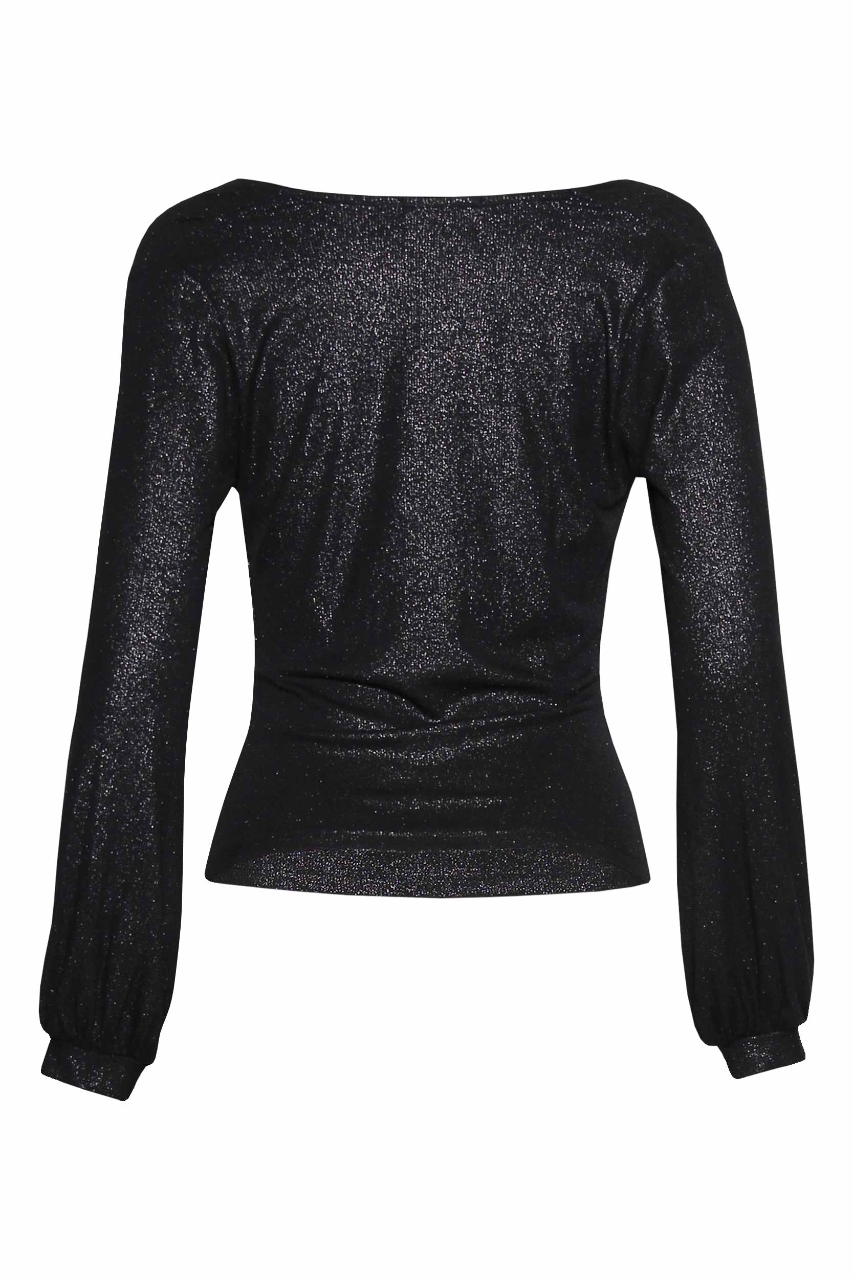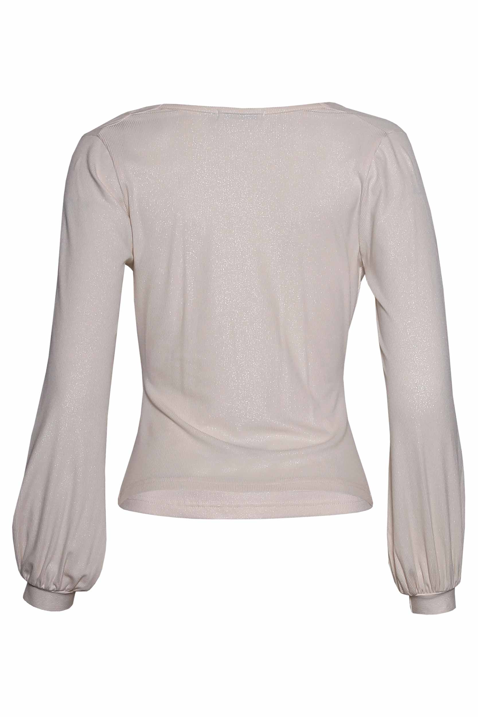 Camisola manga comprida, e fios brilhantes.