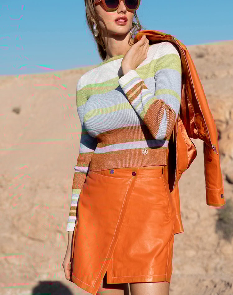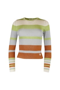 Camisola de malha justa com nervuras. Decote redondo. Manga comprida.