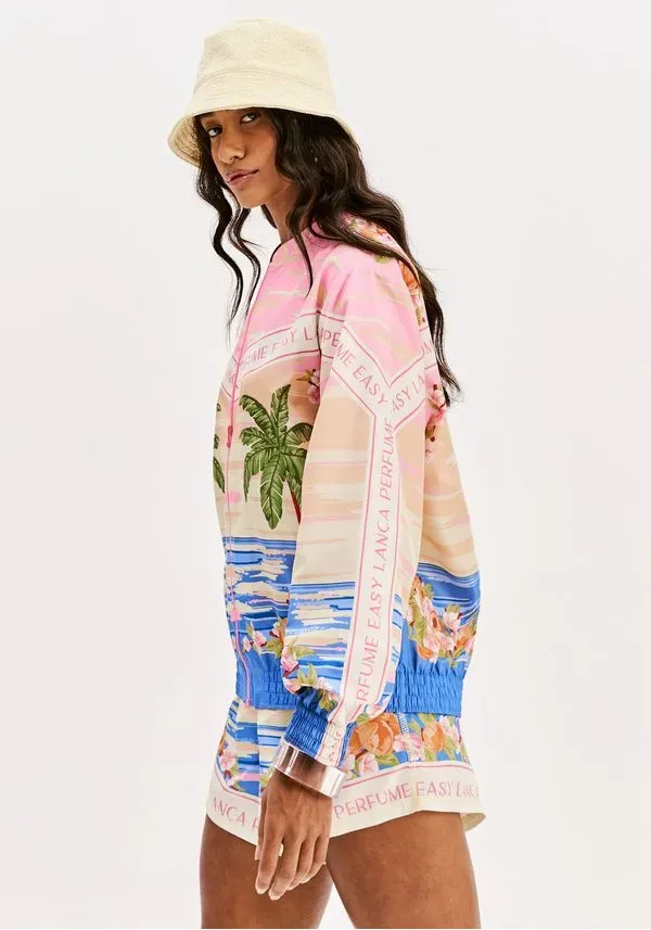 Bomber é feita em tecido plano leve com estampa exclusiva. Possui mangas longas, caimento solto e fechamento por zíper. Elásticos aplicados na barra e nos punhos reforçam o mood descontraído e garantem mais conforto ao vestir. Renove seu estilo!
