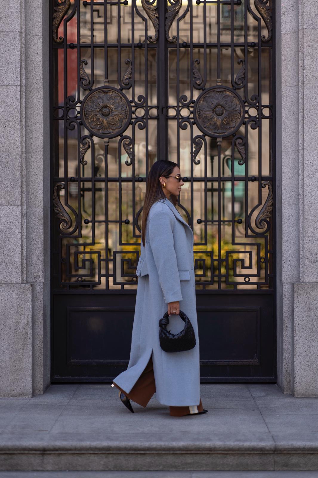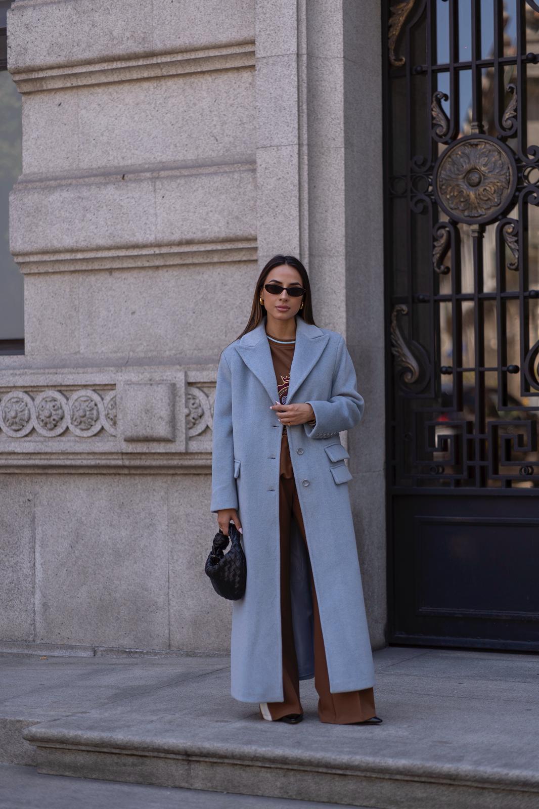 Casaco comprido Sahoco em lã premium. O design estruturado com lapelas clássicas e abotoamento frontal transmite elegância intemporal. Detalhe posterior com faixa e botões para um ajuste refinado. Perfeito para completar coordenados elegantes em dias frios, combinando modernidade com sofisticação.