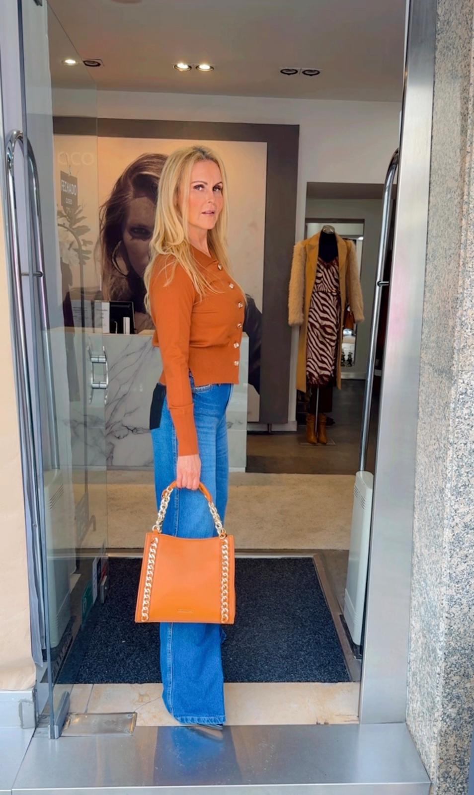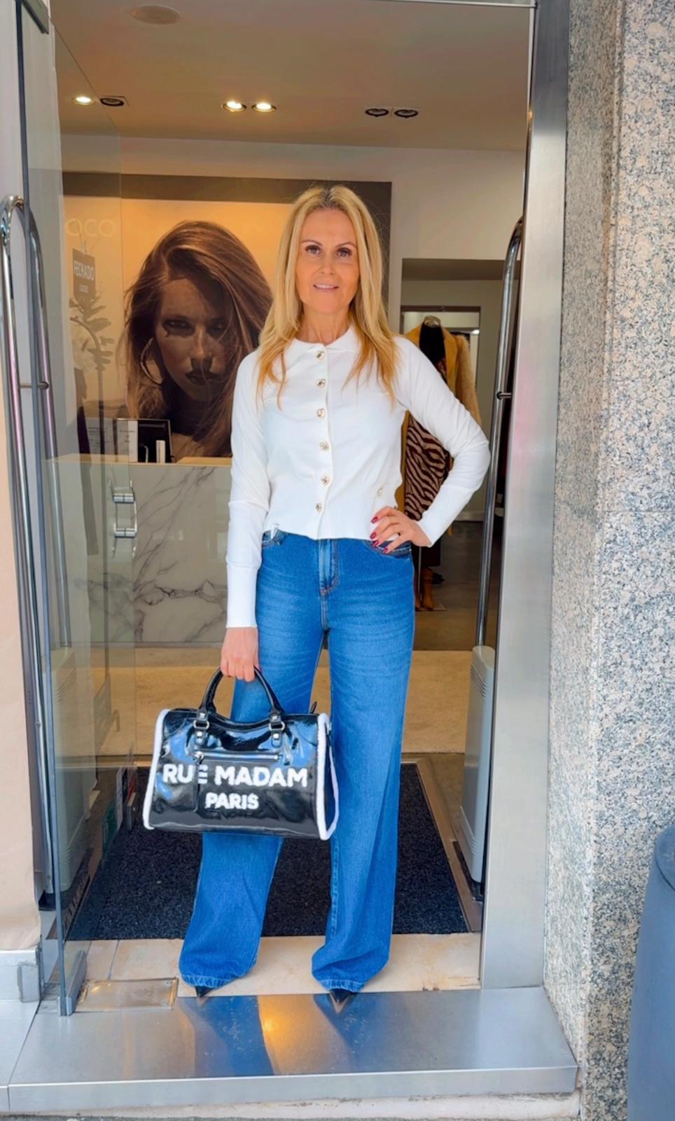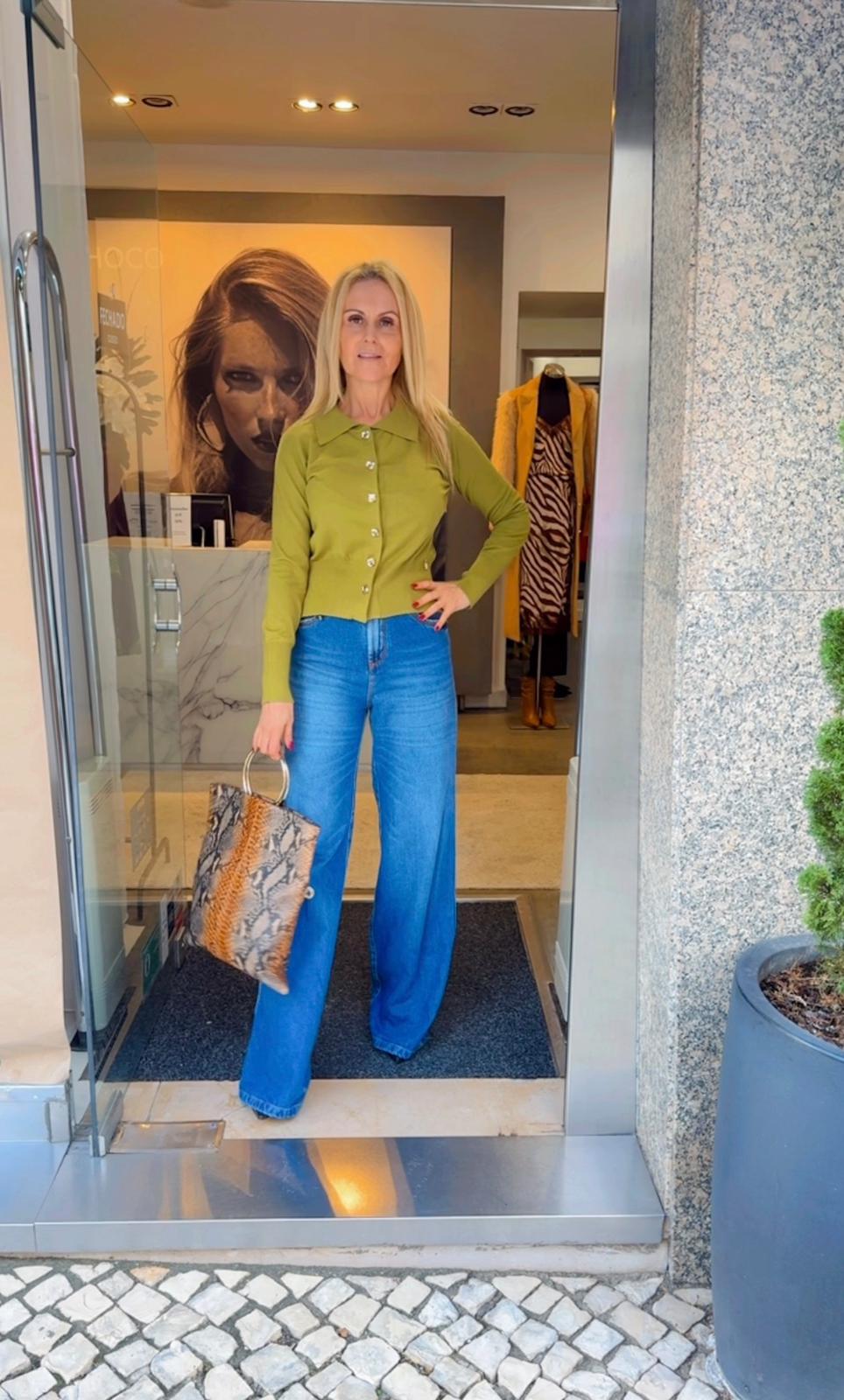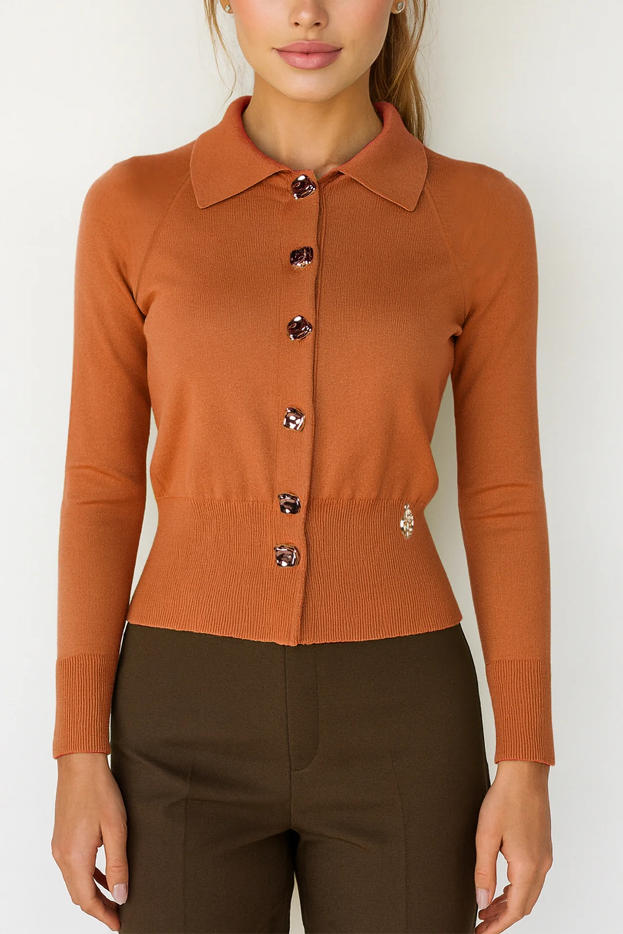 Cardigan em malha fina de toque suave e estrutura compacta. De corte curto e ajustado, apresenta gola clássica e punhos canelados que acentuam a silhueta. Os botões decorativos em tom metálico elevam a simplicidade da peça.