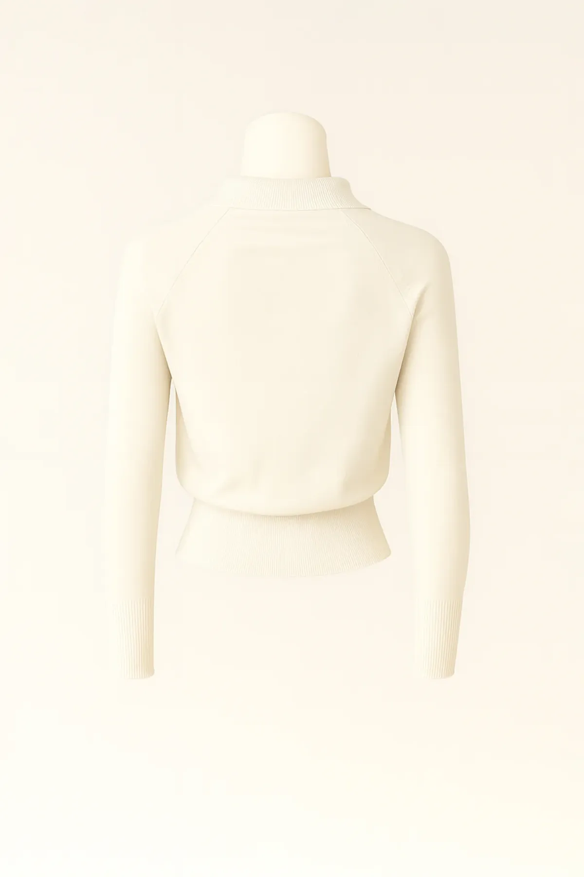 Cardigan em malha fina de toque suave e estrutura compacta. De corte curto e ajustado, apresenta gola clássica e punhos canelados que acentuam a silhueta. Os botões decorativos em tom metálico elevam a simplicidade da peça.