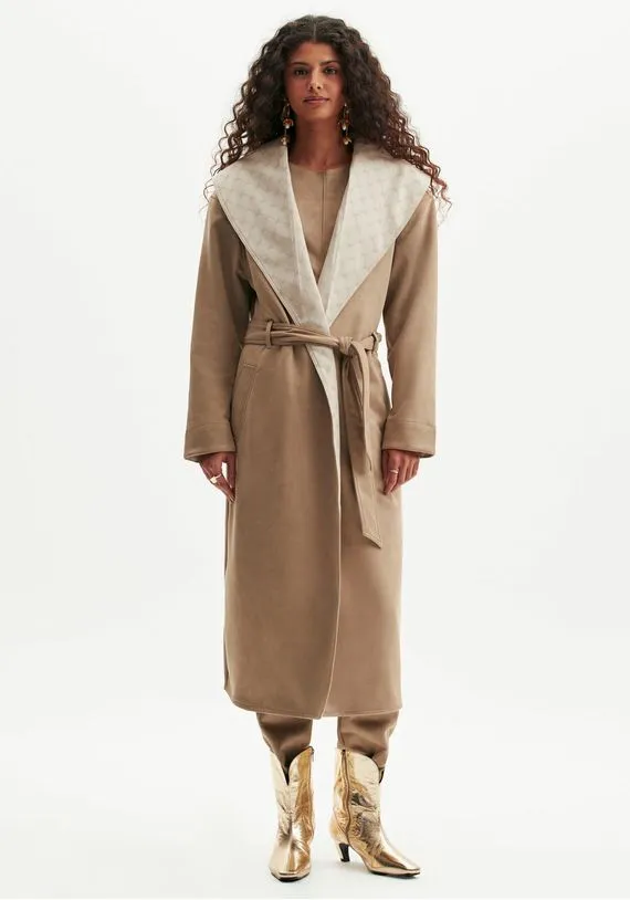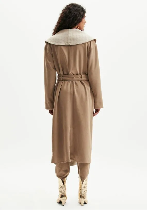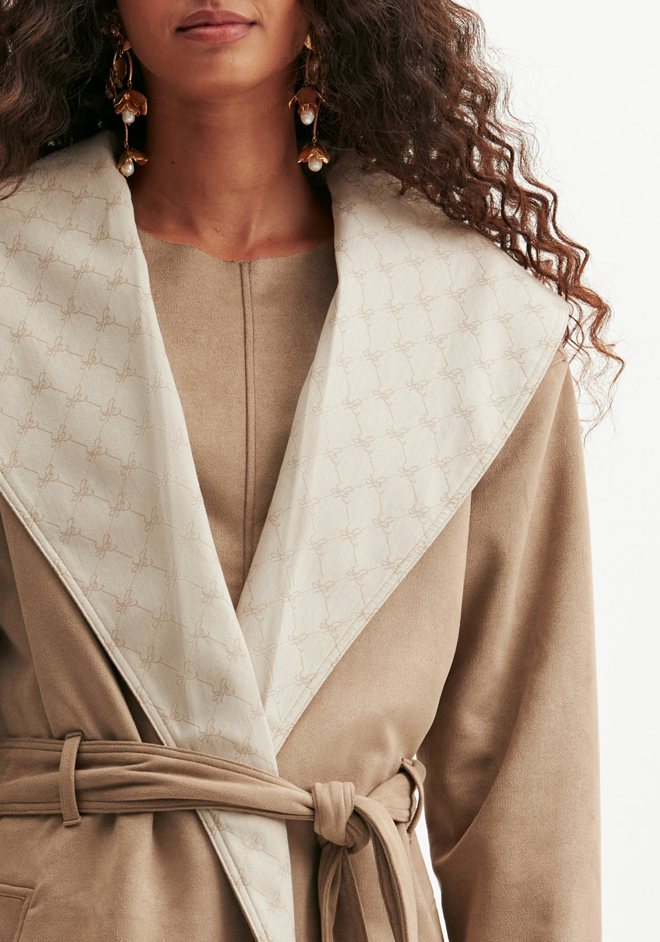 trench coat feminino com modelagem super midi possui mangas longas, bolsos embutidos e cós com passantes. Confortável e sofisticado, conta com maxi lapelas para adicionar um toque extra de glamour às produções da estação. Must-have!