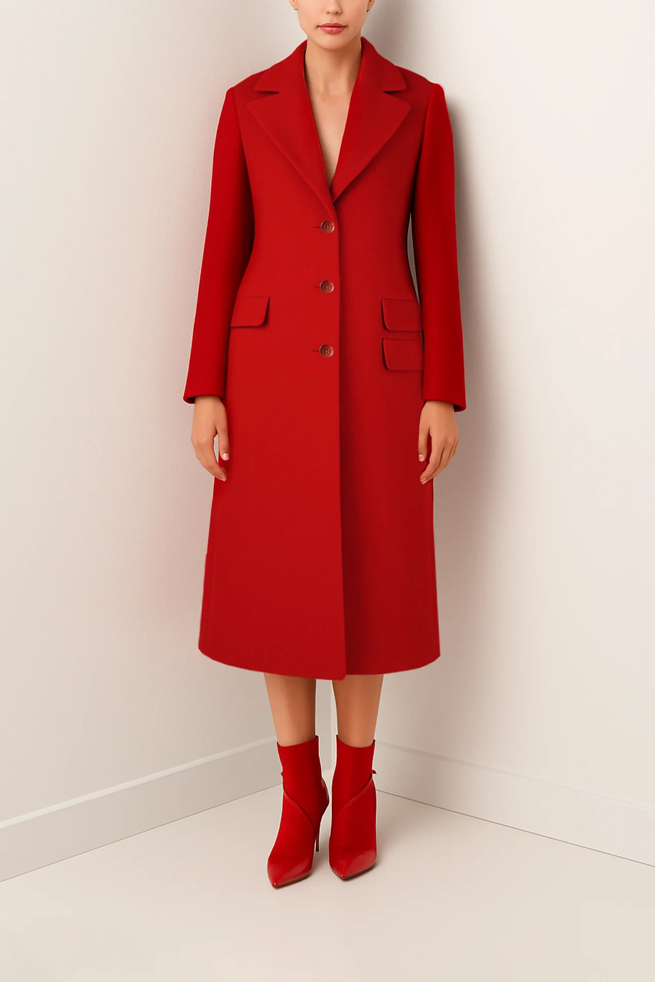 Casaco comprido Sahoco em lã premium. O design estruturado com lapelas clássicas e abotoamento frontal transmite elegância intemporal. Detalhe posterior com faixa e botões para um ajuste refinado. Perfeito para completar coordenados elegantes em dias frios, combinando modernidade com sofisticação.